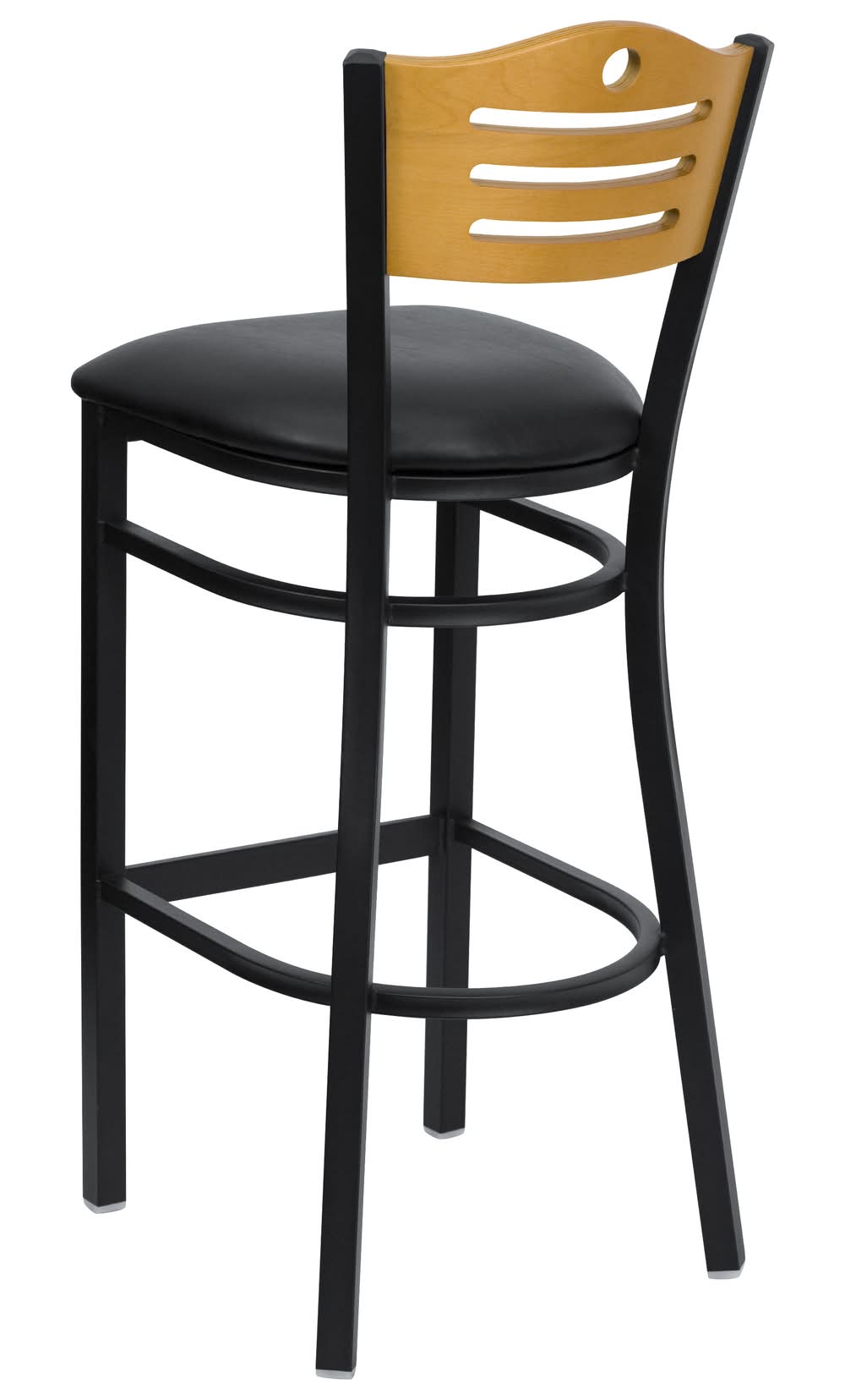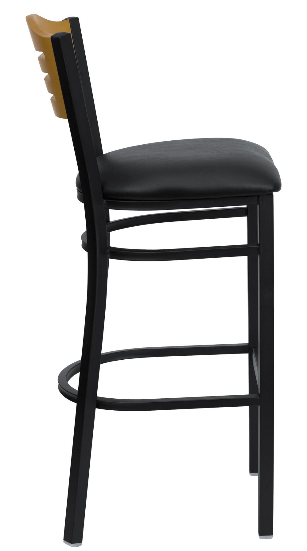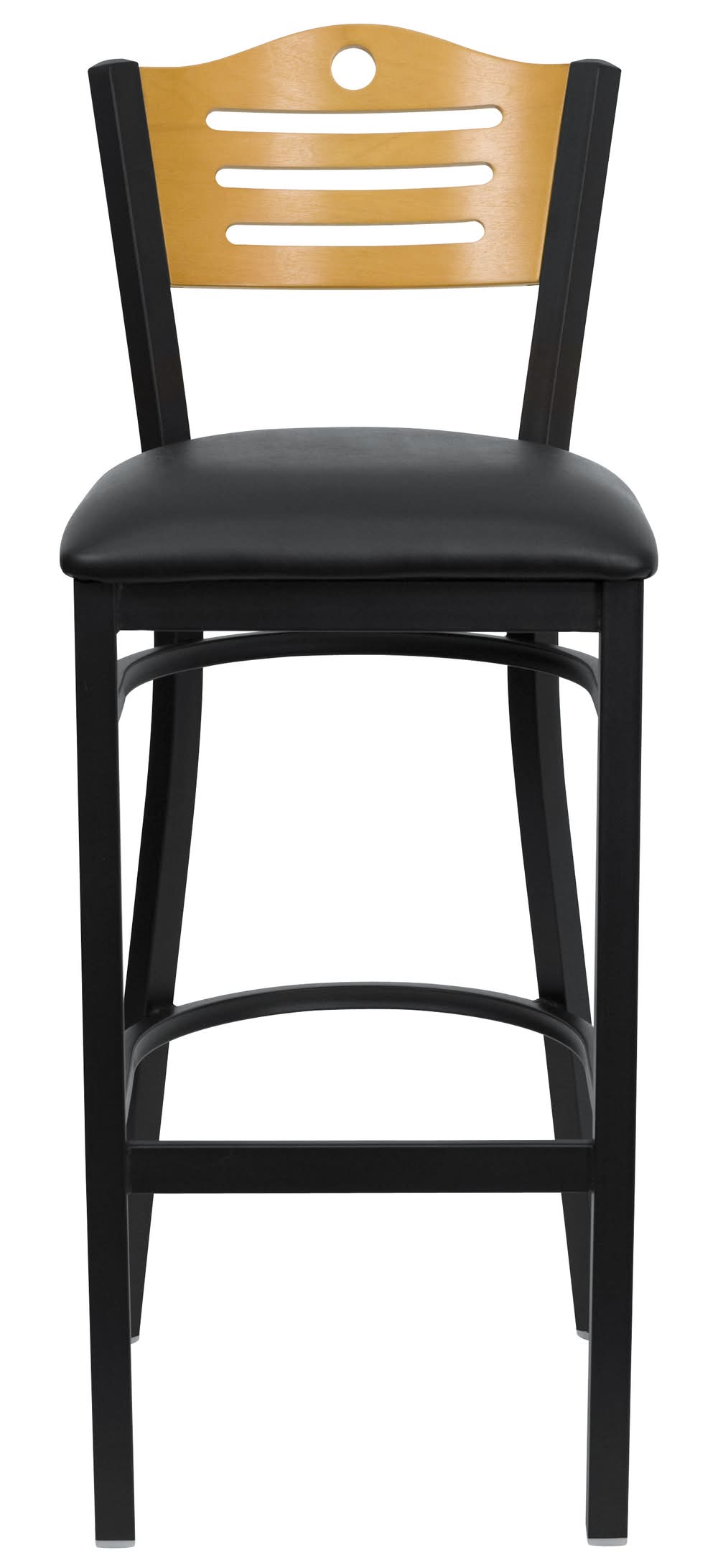 Flash Furniture Natural Wood Bar Height Upholstered Metal Bar Stool, 32 in, Natural Wood Back/Black Vinyl Seat/Black Metal Frame