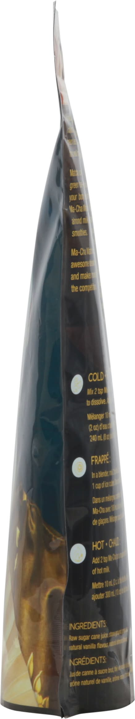Gluten & lactose free. 20 servings portions. Our matcha latte mix contains no artificial flavours, colours of preservatives. Pure stone ground matcha green tea, raw sugar cane juice and spices make for a real treat. Matcha contains many times the antioxidants of green tea good for your taste buds, better for your body. Enjoy this delicious treat hot or cold. Ma-Cha matcha can be mixed with milk, soya milk, almond milk, rice milk or blended in your favourite smoothies. Ma-Cha matcha is also great in cereal and makes awesome dessert treats. Our recipe is low in sugar and makes more than twice as many beverages as the competition. www.ma-cha.ca. Tea Squared Inc.,