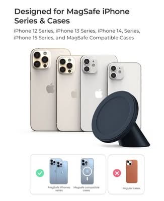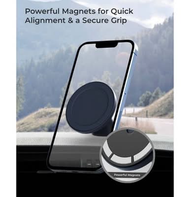 The Velox Magnetic Flush Mount is a low-profile car mount designed specifically for MagSafe-compatible iPhones and cases. Made from high-grade silicone, durable aluminum, and powerful magnets, the Flush Mount offers a strong, scratch-free hold, even on the roughest of roads. Its modern, unobtrusive profile blends seamlessly into any vehicle’s interior without obstructing your view. Featuring a highly versatile ball joint that rotates, swivels, and tilts, you can easily adjust the mount head with one hand to find your ideal viewing angle in portrait or landscape mode. Mount with confidence thanks to the advanced adhesive base which securely attaches to any flat surface on your vehicle’s dash. Only MagSafe-compatible iPhones Cases, including the iPhone 14, iPhone 14 Plus, iPhone 14 Pro, iPhone 14 Pro Max, iPhone 13 mini, iPhone 13, iPhone 13 Pro, iPhone 13 Pro Max, iPhone 12 mini, iPhone 12, iPhone 12 Pro, iPhone 12 Pro Max Color: Dark blue