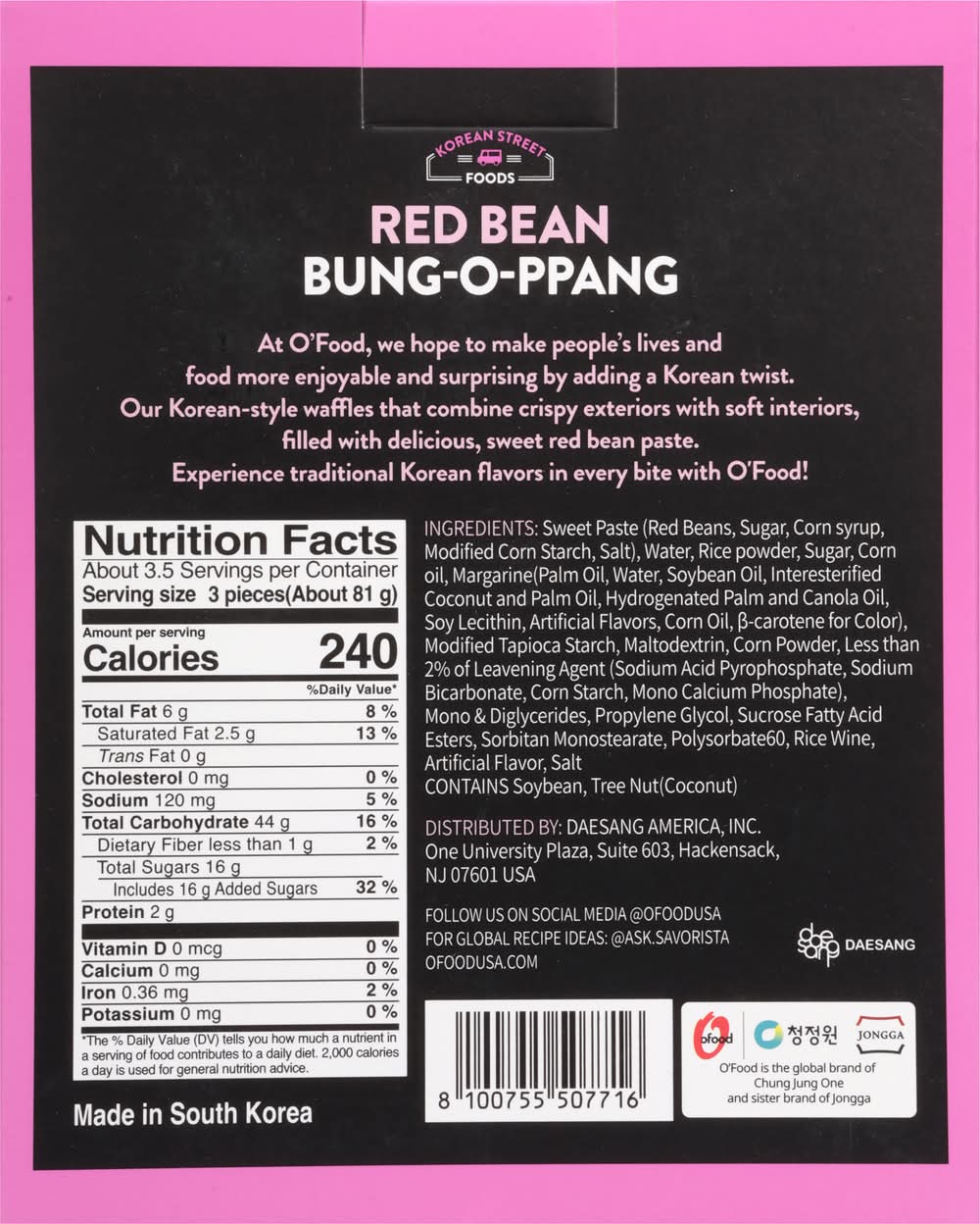 O'Food Korean Style Red Bean Waffles (10.5 oz)