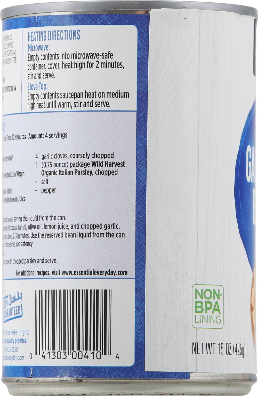 Essential Everyday Garbonzo Beans, 15oz. Packaging: Reusable