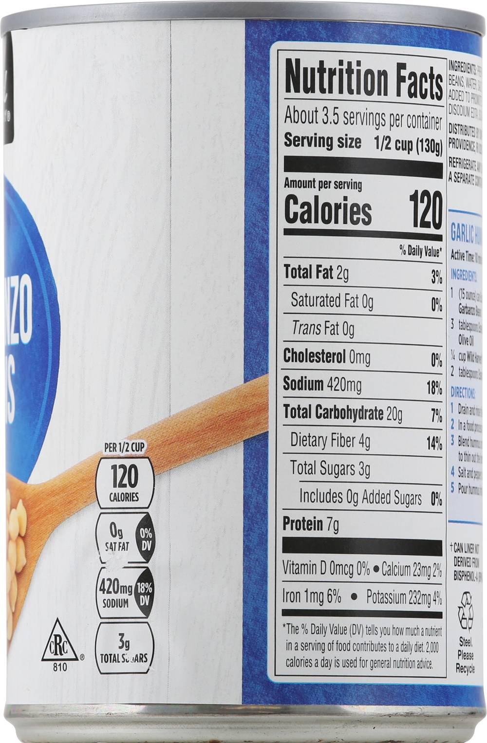 Ingredients: Prepared Garbanzo Beans, Water, Salt (the Following Added to Promote Color Retention) Disodium EDTA, Sodium Metabisulfite.