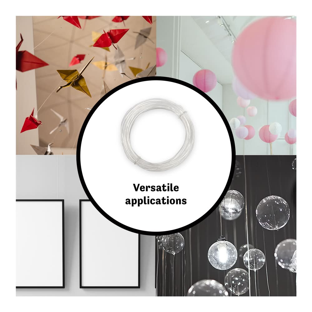 Hillman Invisible Hobby Wire is ideal for suspending or hanging items. This invisible wire blends in with your DIY projects or crafts. Invisible wire won't show and will help add a more complete look to your project. This wire has a 15lb weight rating. 25 feet allow for multiple projects to be completed. Size: 25 ft