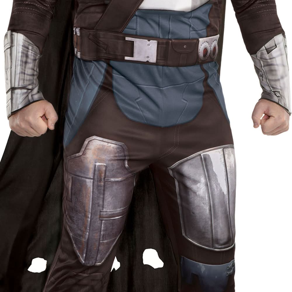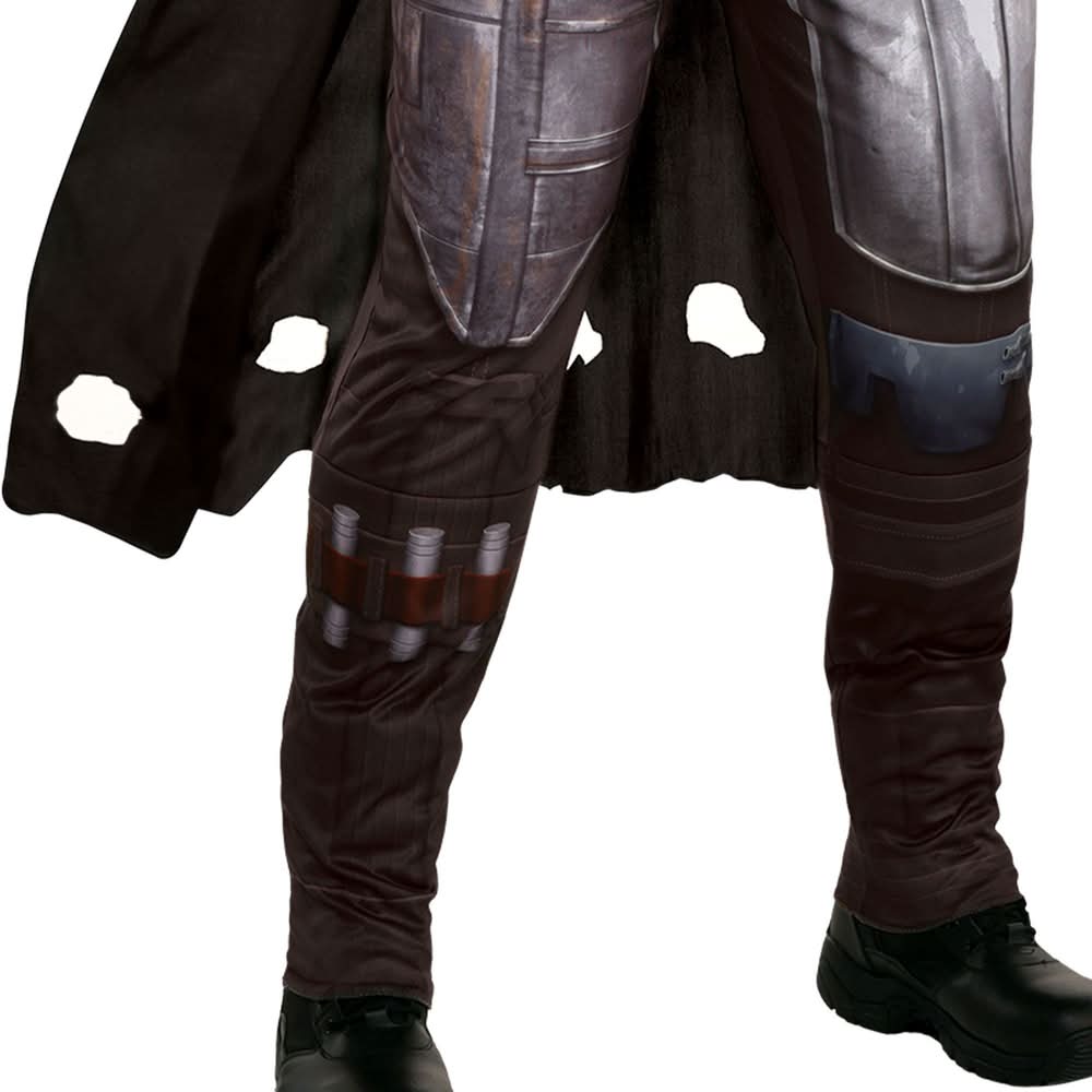 Step into the shoes of the iconic bounty hunter with this updated Mandalorian costume. It features a padded jumpsuit printed to resemble armor, a long black cape with cutouts at the hem, and an attached cross-body bandolier prop. Top it all off with the replica mask and you're ready to explore dangerous galaxies. pbSeason 2 Mandalorian Deluxe Costume product details:/b/p ul liPrinted polyknit jumpsuit ul liPadded upper/li liPolyester/li /ul /li liMolded mask ul liElastic band to secure/li liPlastic/li /ul liCape ul liCutouts along hem/li liPolyester/li /ul /li liBandolier ul liHook-and-loop closure/li liPolyester/li /ul /li liShoes not included/li liReview size chart for sizing information/li /ul pOfficially licensed copy;Lucas costume./p pbCare Instructions:/b/p ul liHand wash cold with like colors/li liLine dry/li liDo not bleach or iron/li /ul