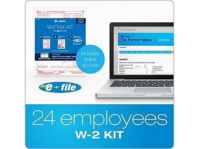 Make quick work of 2021 taxes with this Adams W-2 tax kit. File W-2s for 24 employees. This Adams tax kit includes 24 six-part W-2 forms, three W-3s, access to Tax Forms Helper Online, and five free federal e-files. - Use form W-2 to report employee wages, tips, and taxes withheld to the Social Security Administration and your employees - 2021 W-2 forms must be mailed or e-filed to the SSA and furnished to your employees by January 31, 2022 - Six-part W-2 forms print two to a page on 12 microperforated sheets with copies A, D/1, B, C, 2, and D/1 - Inkjet and laser printer compatible - Pack contains 24 W-2 forms, three W-3 summary forms, and access to Tax Forms Helper Online 2021 (access code and password included in your package) - Sheet size: 8.5 x 11; detached size: 5.5 x 8.5 - White forms have scannable red ink copies A and W-3 required by the IRS for paper filing - Acid-free paper and heat-resistant inks produce smudge-free, archival-safe records; meets IRS specifications - Log in to Tax Forms Helper and get five free federal e-files from Adams Tax Forms, an authorized e-file provider - QuickBooks Connector allows for seamless integration with QuickBooks Online - Use CSV files for compatible imports from QuickBooks Desktop or other common accounting software programs - Use with W-2 envelopes (not included in this pack)
