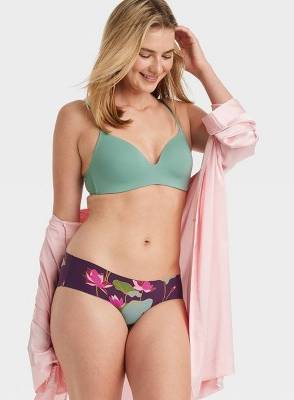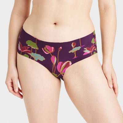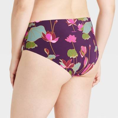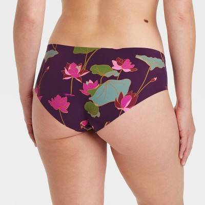 Auden Women's Waterlily Floral Print Invisible Edge Hipster Underwear, XS, Purple