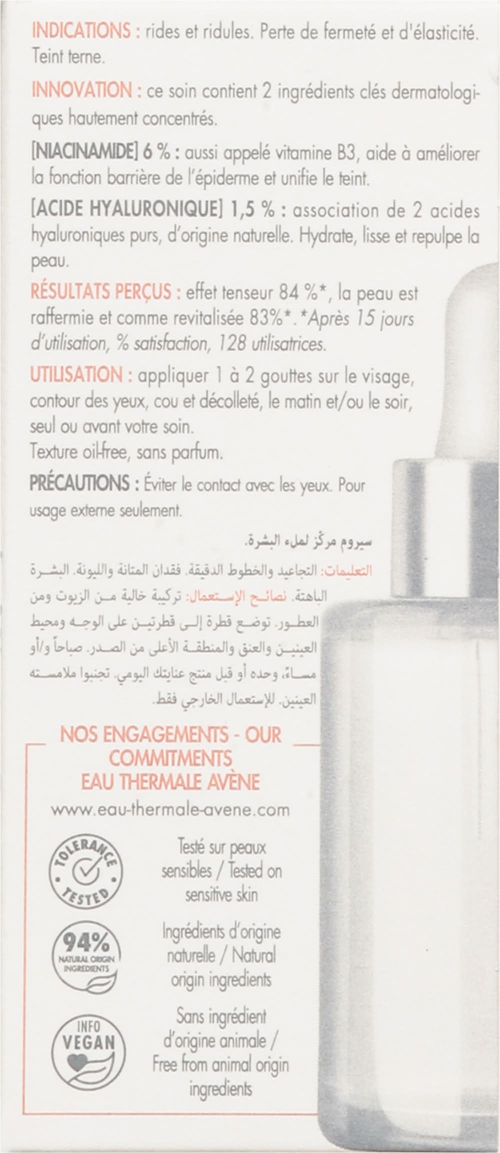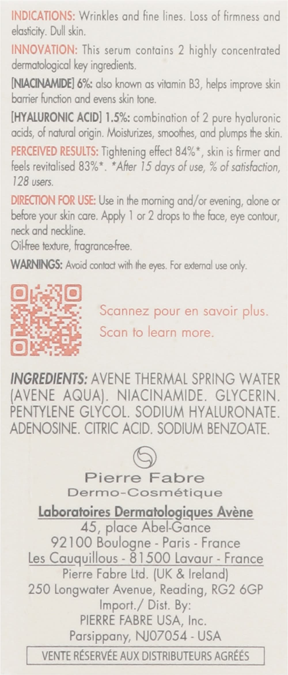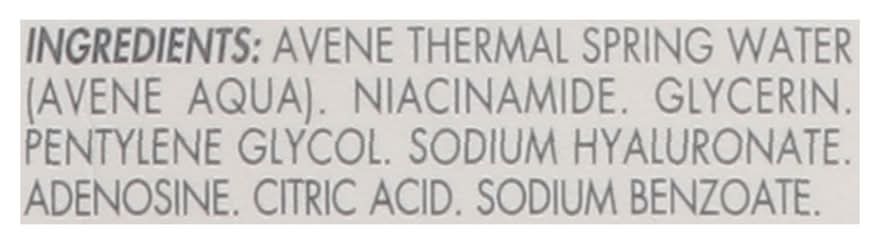 Ingredients: Avene Thermal Spring Water (Avene Aqua), Niacinamide, Glycerin, Pentylene Glycol, Sodium Hyaluronate, Adenosine, Citric Acid, Sodium Benzoate