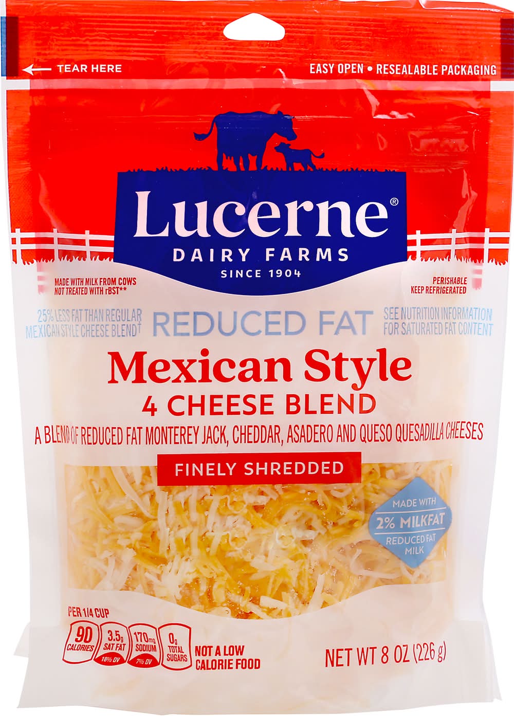 Your Lucerne Reduced Fat Mexican Style Finely Shredded Cheese Blend delivery options may vary depending on where you are in a city. Enter your address to browse Lucerne Reduced Fat Mexican Style Finely Shredded Cheese Blend delivery options near you.