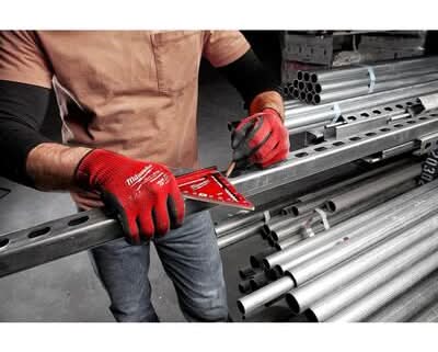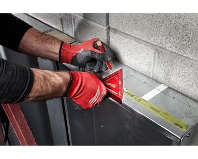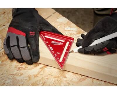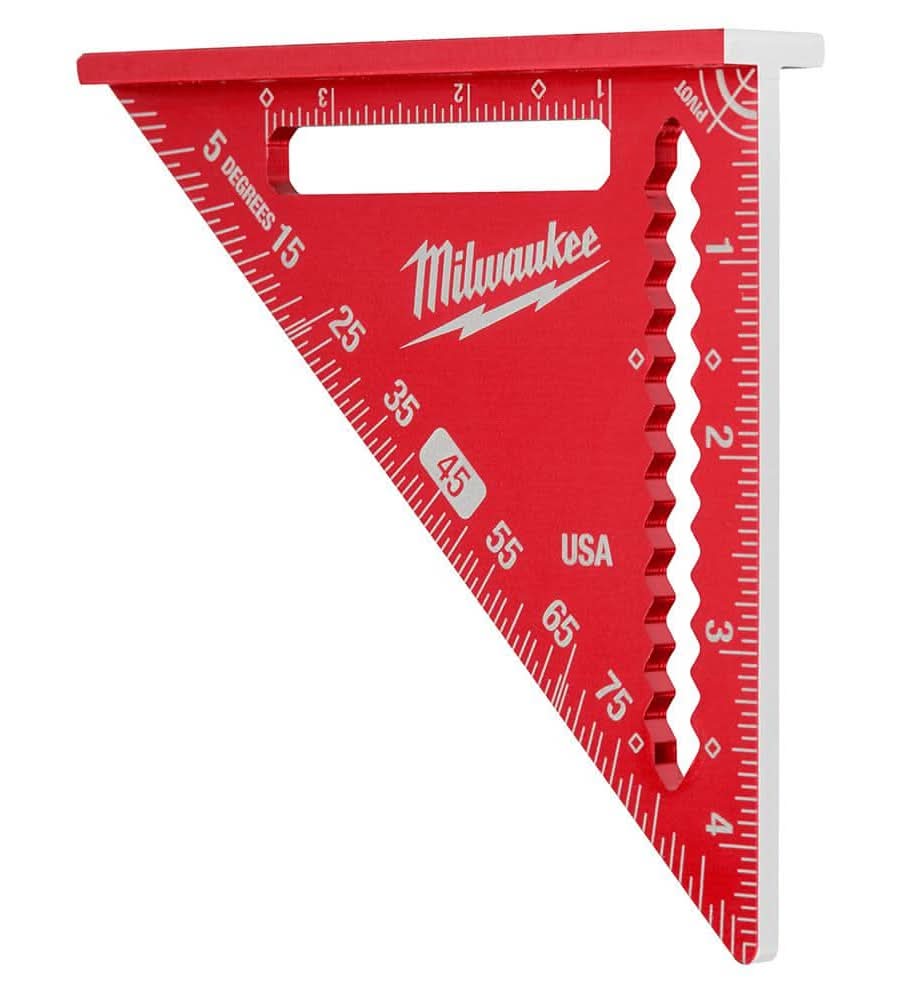 The Milwaukee 4-1/2 in. Trim Square is an everyday carry layout solution. The Milwaukee Compact Speed Square is 35% smaller in size to easily fit into tight work spaces as well as the user's pockets and pouches. High visibility laser etched markings will not wear off after heavy use, providing users with consistent high visibility throughout the life of the square. A 1/4 in. and 3/8 in. dual measurement heel also enables users to perform quick marks. The trim speed square is backed by a Milwaukee Limited Lifetime Warranty. • Color: Red • Size: 4-1/2 Inch