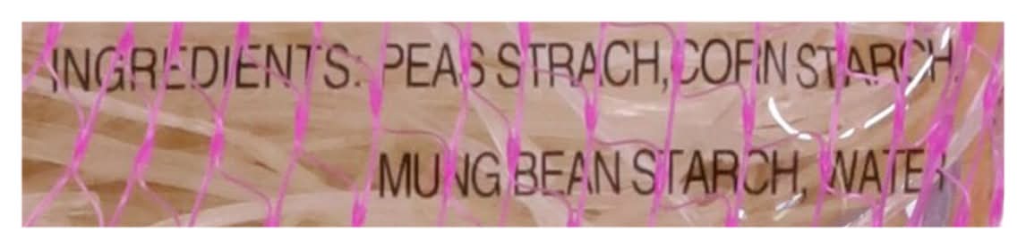 Peas, Starch, Corn Starch, Mung Bean Starch, Water. Contains: Corn