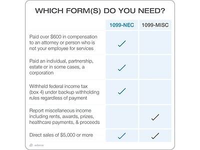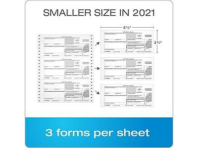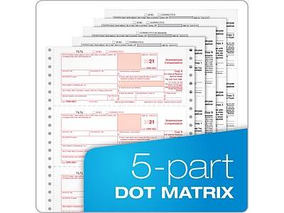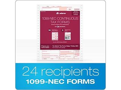 Get the Adams 2021 IRS form 1099-NEC on continuous feed paper for pin-fed dot matrix printers. The pack includes 24 five-part 1099-NEC and three 1096 forms and is great for CPAs, accountants, households, and small businesses. - 1099-NEC tax form reports nonemployee compensation paid to independent contractors and is great for CPAs, accountants, households, and small businesses - 2021 1099-NEC must be mailed or e-filed to the IRS and furnished to your recipients by January 31, 2022 - Five-part 1099-NEC form prints three to a page on eight microperforated sheets with copies A, 1, B, 2, and C - Dot matrix printer compatible - Pack contains 24 1099-NEC continuous pin-fed forms and three 1096 summary forms - Sheet size: 9 x 11; detached size: 8.5 x 3.67 - Look for two NEC updates in 2021: report payer-made sales of $5000 or more in NEC box 2 or MISC box 7; you can no longer report cash paid for fish for resale in NEC box 1; use MISC box 11 instead - Features scannable red ink copies A and 1096 required by the IRS for paper filing - Acid-free paper and heat-resistant ink produce smudge-free, archival-safe records - Compatible with QuickBooks, Adams Tax Forms Helper, and other accounting and tax software programs - Meets IRS specifications