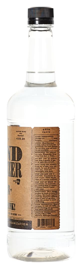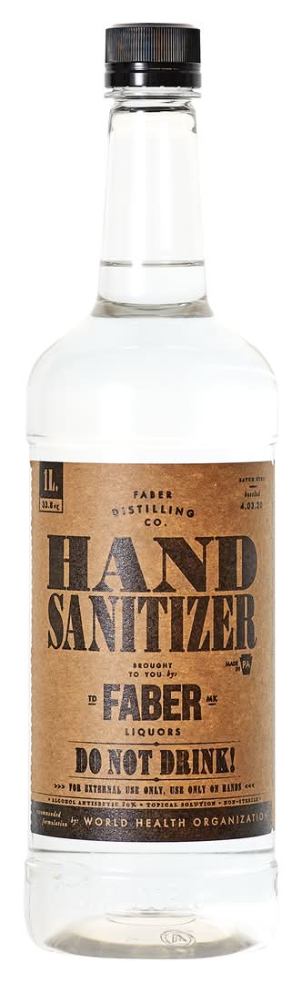 Faber Distilling Co. has turned its gears to producing a World Health Organization-approved hand sanitizer out of its Bucks County, PA-based distillery. This is a liquid, not gel, 80% alcohol antiseptic, non sterile hand sanitizer for topical use. Use to refill your smaller hand sanitizer containers.