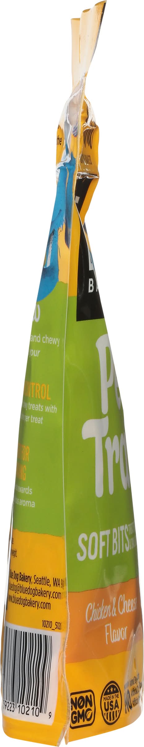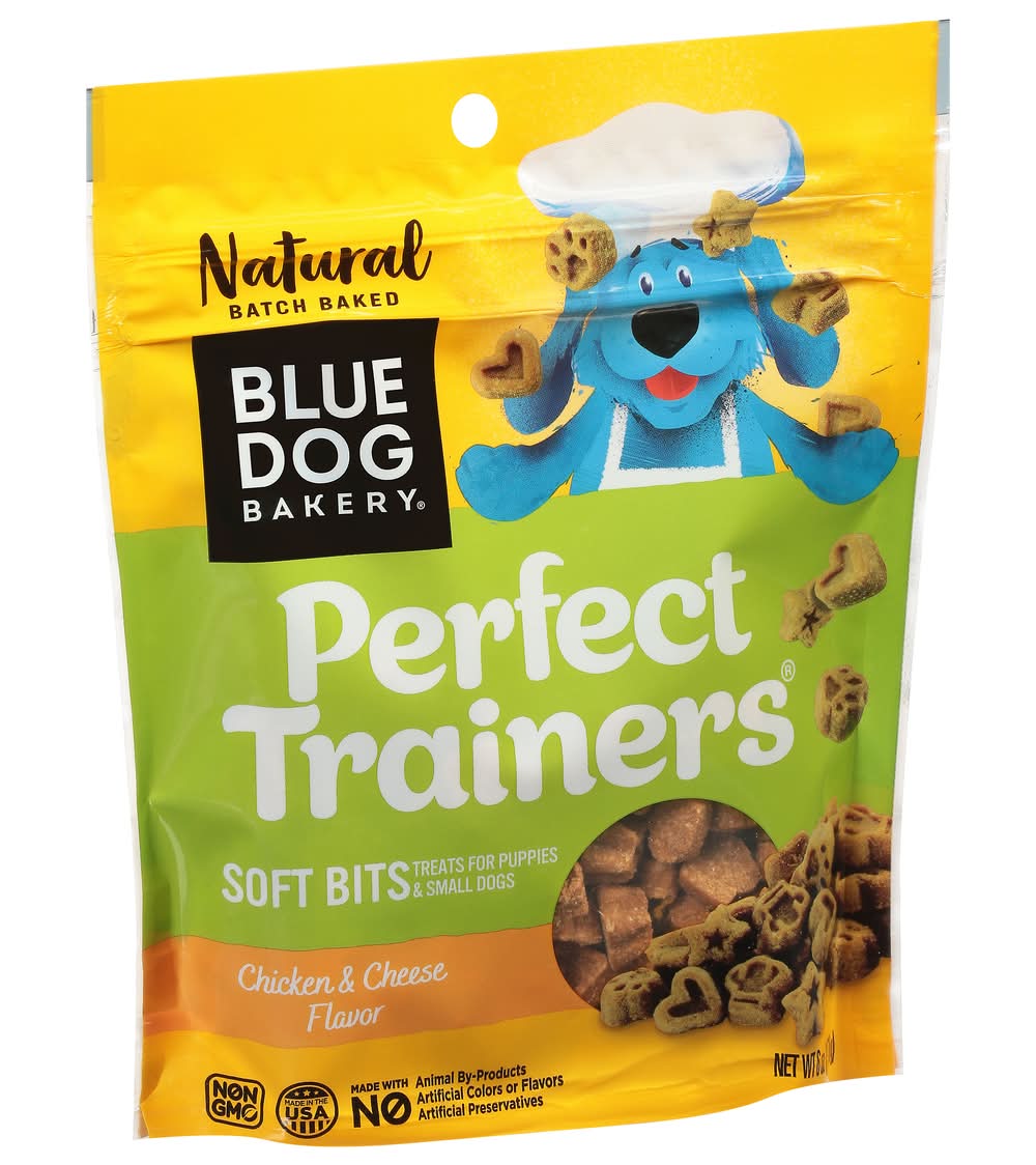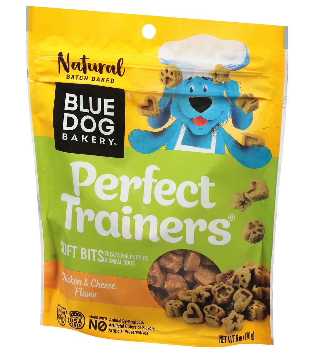 Treats for puppies & small dogs. Made with no: artificial colors or flavors Non-GMO. Natural batch baked. Made with No: animal by-products; artificial preservatives. Treating Better Every Day: Let's face it, dogs are extraordinary. At Blue Dog Bakery, we celebrate the individual personalities of dogs and pet parents alike. With unique treat shapes, droolworthy flavors, and handpicked ingredients, we defy the ordinary to add wonder to snacking, training, and rewarding. We put health and joy within reach - every day, everywhere for every dog. Start off on the right paw: Perfect Trainer's bring joy to everyday training and rewarding. These soft and chewy treats are made with simple and healthy ingredients to make sure your pup is starting of in the right paw. Natural: Our batch-baked treats are always made without artificial ingredients. Portion Control: Small soft and chewy treats with only 3 calories per treat. Great for training: Bite-size rewards with delicious aroma. This package is sold by weight. www.bluedogbakery.com. Add joy to your day & theirs. Facebook: (at)bluedogbakerytreats. Instagram: (at)bluedogbakery. Web: www.bluedogbakery.com. (hashtag)bluedogbakery. (hashtag)mybluedog. Healthy Treats for All: We make it our mission to put wholesome, tasty treats within reach for all dogs - those with families and without. We proudly support non-profit organizations who share our vision of better lives for pets. Visit our website to learn more! - Ruffy. Made in the USA.