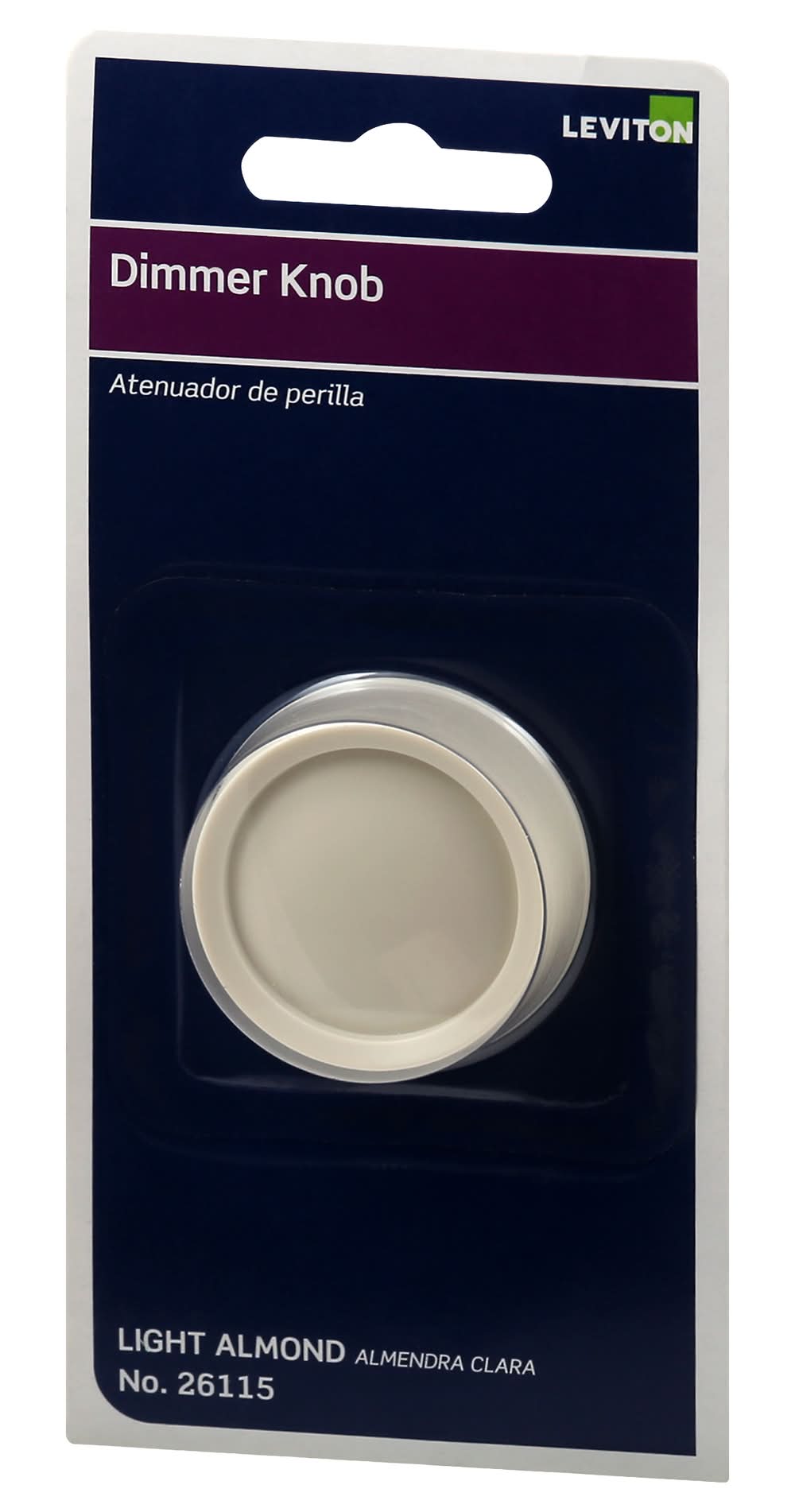 Fits most rotary dimmers with 0.25 inches diameter D shape shaft. Slides onto dimmer shaft. www.leviton.com. Follow Us On: www.facebook.com/leviton. www.youtube.com/levitonmfg. www.twitter.com/leviton. Product information hotline: 1-800-824-3005/www.leviton.com. Tel: 55-5082-1040. Made in China. Liviton,