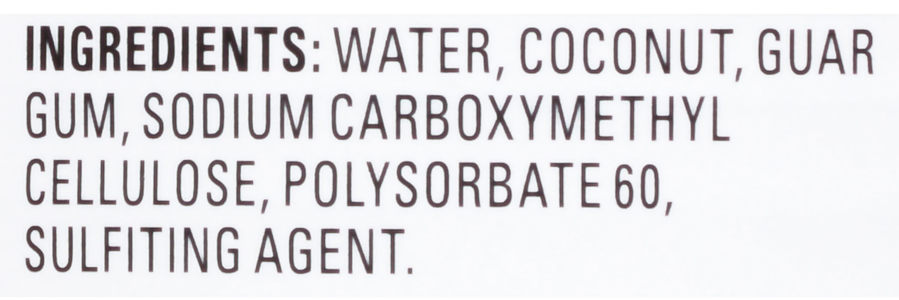 Water, Coconut, Guar Gum, Sodium Carboxymethyl Cellulose, Polysorbate 60, Sulfiting Agent. Contains: Tree_nuts, coconut