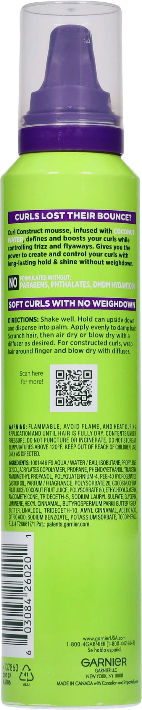 Directions: shake well. hold can upside down and dispense into palm. apply evenly to damp hair. scrunch hair then air dry or blow-dry with a diffuser to get curls with bounce and shine. get inspired! create a curly q look: work mousse evenly through slightly damp hair. create ringlet curls by wrapping hair around finger then blow-dry and diffuser for definition without frizz. finish any curl construct style with garnier fructis hairspray for long-lasting hold.