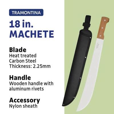 Tramontina Machete With Carbon Steel Blade and Wood Handle With Nylon Sheath, 18 in