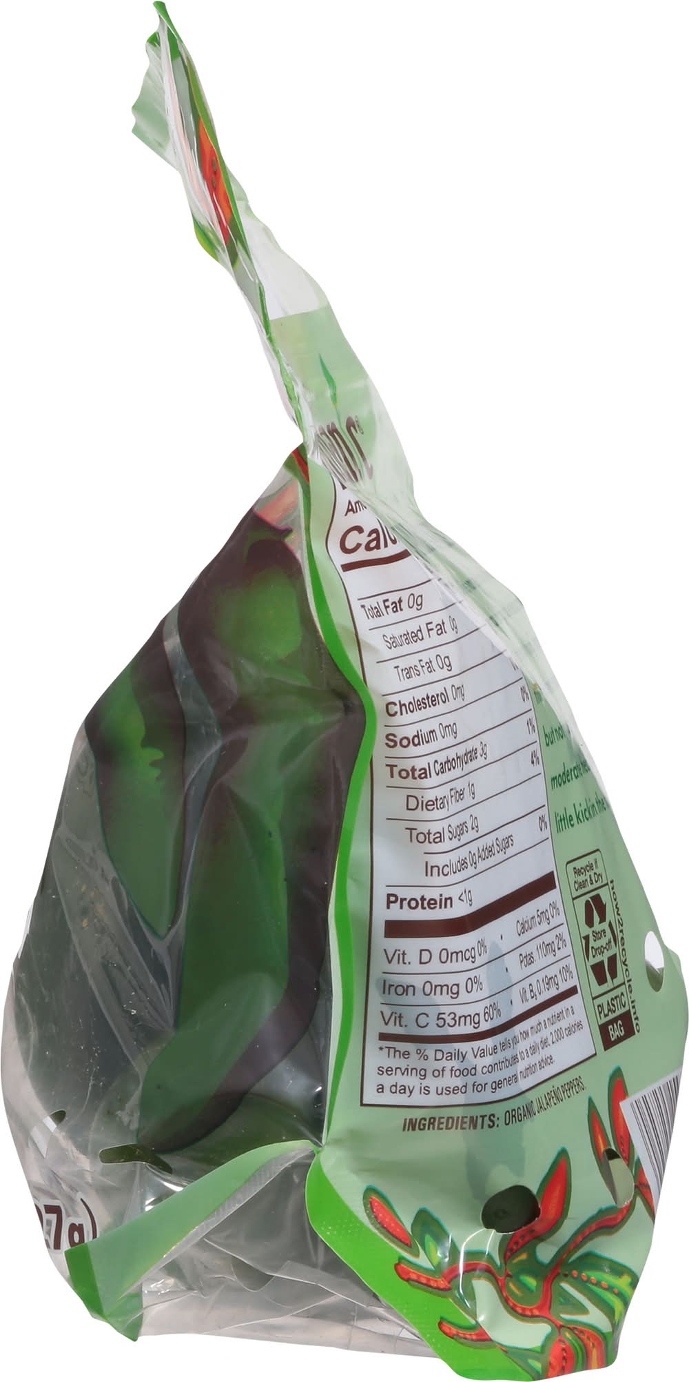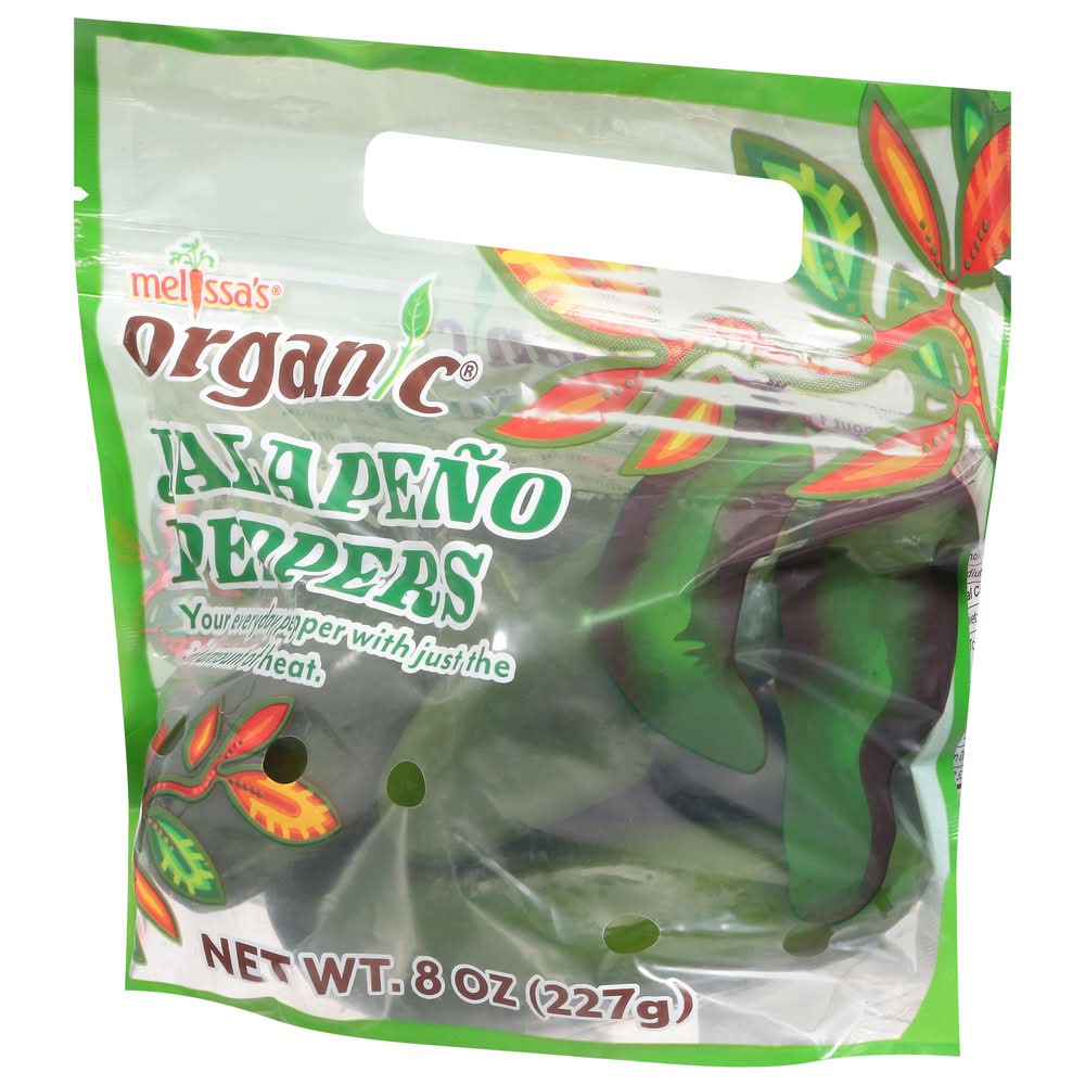Certified Organic by: CCOF. Your everyday pepper with just the right amount of heat. Jalapeno Peppers: From Vietnamese Pho to spicy Mexican Margarita, you can incorporate America's favorite pepper into just about anything. Depending on your tolerance, this thick-fleshed capsicum can be note by spicy, but not too spicy, bringing the right amount of moderate heat for those looking for a little kick in the taste buds. www.melissas.com. how2recycle.info. Product of Mexico. Size: 1 CT