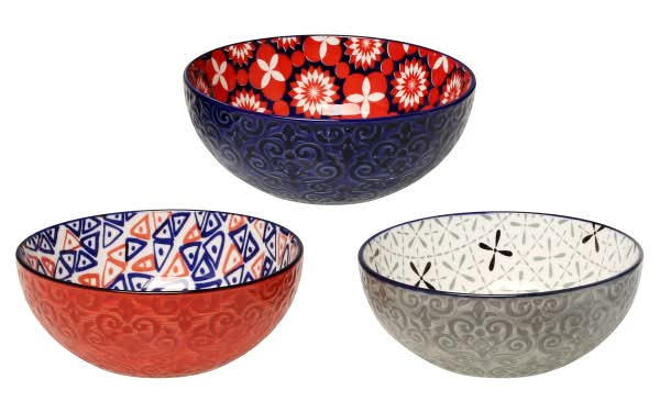 BIA Cordon Bleu Sigrid Bowl, Red-Blue-Gray (3 pack)