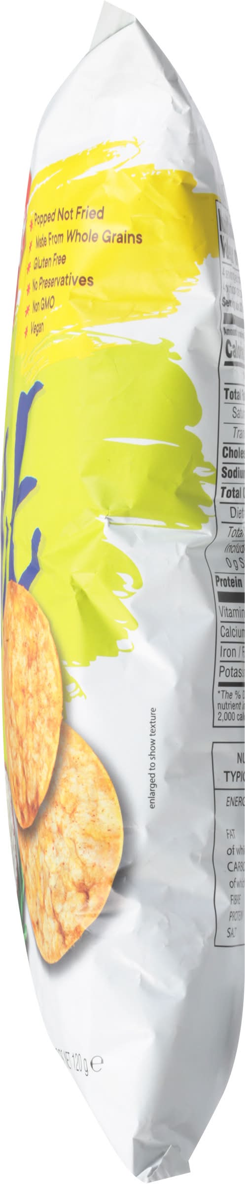 Nutrition Information Typical Values Per 100 Grams: Energy: 1926 kJ (459 kcal); fat 17 g of which saturates 2.6 g; carbohydrates 65 g of which sugars 1.5 g; fibre 8.9 g; protein 7.1 g; salt 0.98 g. Gluten free. Vegan. Non GMO. Popped not fried. No preservatives. Nothing artificial. Product of Bulgaria. Haddar Foods,