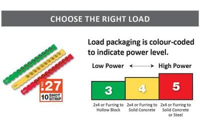 The Ramset 0.27 Caliber Red Strip Loads 100 Count come with 10 red strips each containing 10 powder loads. These loads can be used in the Ramset SA270, Viper and Cobra tools. These loads provide enough power to help penetrate concrete and hollow block.