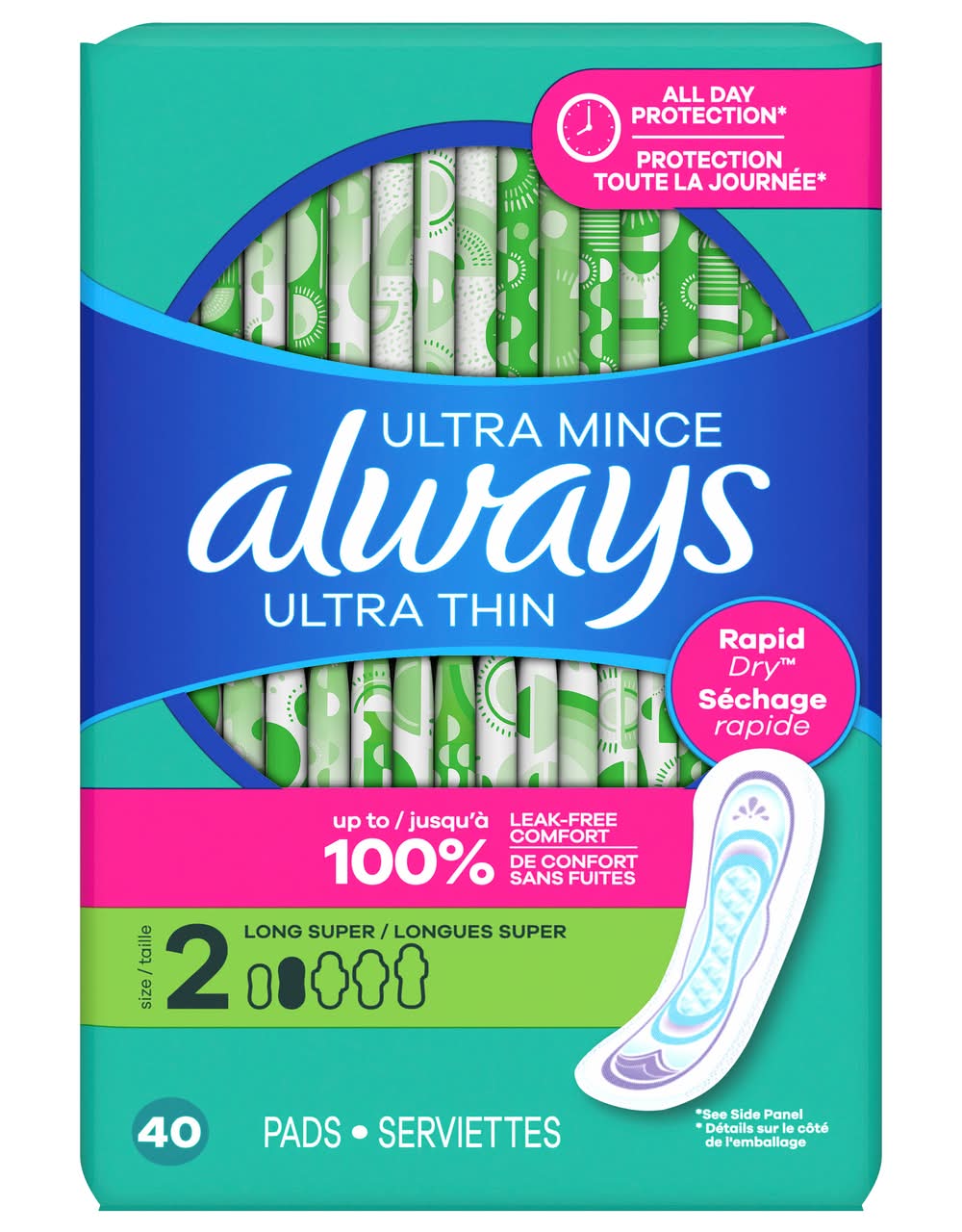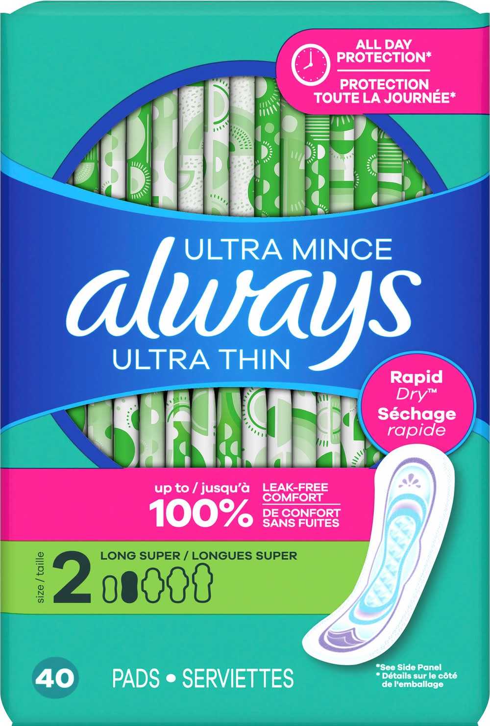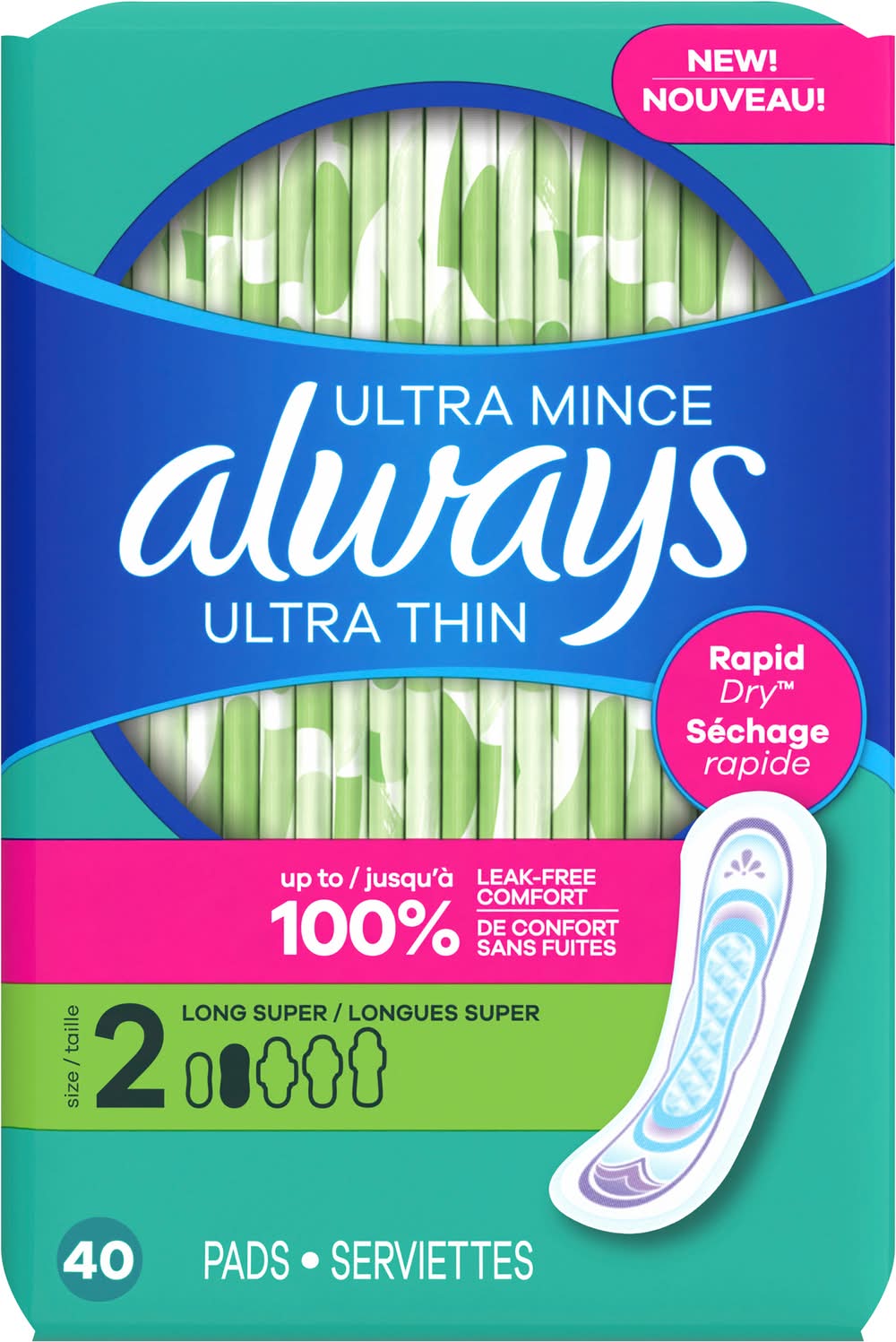 Always Ultra Thin Long Super Sanitary Pads, 2 (40 ct)