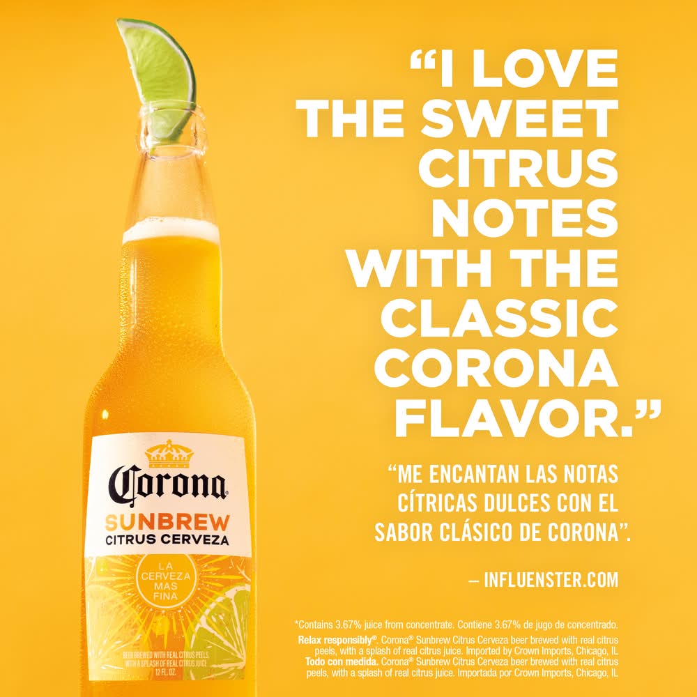 Brewed with real orange and lime peels, Corona Sunbrew Citrus Cerveza combines bold citrus flavors with traditional Mexican beer. PROD - Constellation Brands - ProductXM,