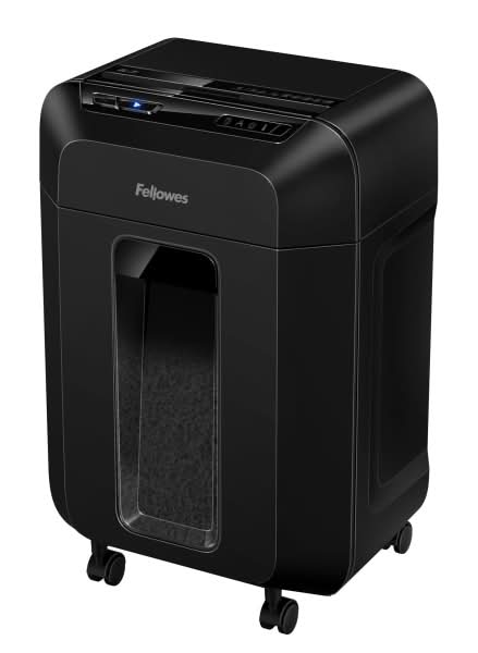 Quickly shred sensitive documents, staples and credit cards with a Fellowes AutoMax 100MA 100-Sheet Auto Feed Micro-Cut Shredder. The auto reverse function helps to prevent jams for smooth operation. Fellowes shredder can handle up to 100 sheets in 5 minutes. 4.5-gallon waste container reduces the need for frequent emptying. P-4 personal shredder destroys credit cards, paper clips and staples. Boasts auto feed and manual shredding capabilities. Retractable tray offers access to the manual opening. Jam-free auto reverse function. Continuously runs up to 7 minutes in manual and 10 minutes in auto feed. Backed by the manufacturer's 1-year limited warranty. Color: Black