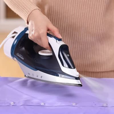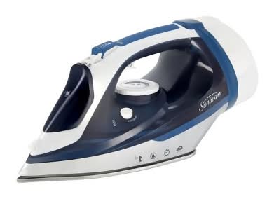 Sunbeam 1700 Watts Steam Iron showcases high-power, high-performance features packed into a convenient, modern design. Includes a powerful SHOT OF STEAM feature to provide an extra burst of steam to help smooth out stubborn wrinkles on both flat surfaces and vertically for hanging garments, upholstery, or drapery. Features an anti-drip system to prevent water leakage and eliminate unwanted drips and self-clean function to remove scale and impurities. For added convenience, this iron has an 8-foot 360° swivel retractable cord for easy storage, LED temperature ready indicator light, variable temperature select for multiple fabric options and a large 280ml water reservoir for lengthy ironing sessions. This clothes iron's precision tip allows you to get in between buttons, lapels and around collars with easy maneuverability. The stainless steel non-stick soleplate surface easily glides over fabrics to smooth out wrinkles quickly and efficiently and have you looking your best.