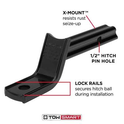 The TowSmart X-mount Ball Mount is a patented X-mount design that channels away moisture to minimize seizing within the aperture of the receiver hitch. The X-mount design also includes a lockrail system that allows you to torque the hitch ball with a single wrench. The lockrail functions as a built-in wrench preventing the hitch ball rotation during installation or removal from the X-mount Ball Mount. Make sure to select the correct class for your towin Cancer and Reproductive Harm - www.P65Warnings.ca.gov