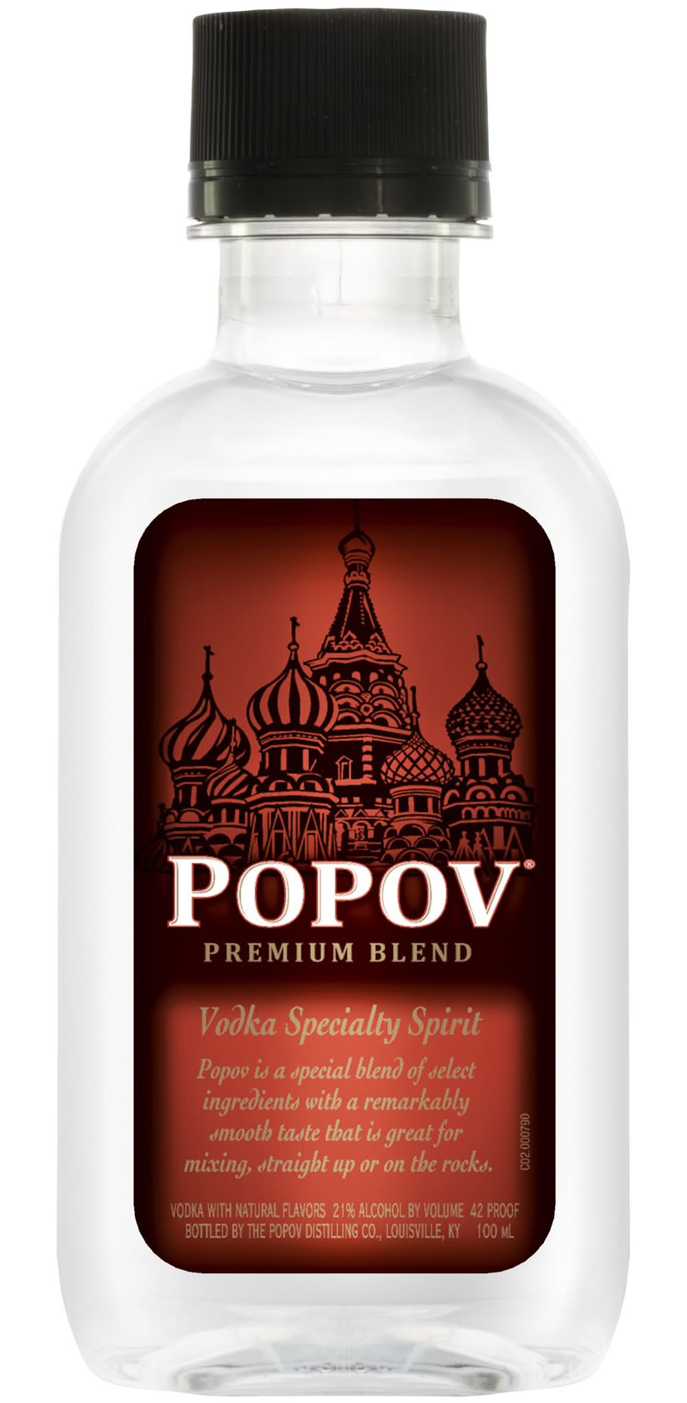 Popov is a special blend of select ingredients with a remarkably smooth taste that is great for mixing, straight up or on the rocks. This premium blend vodka is carefully distilled with select ingredients and then filtered through selected charcoal for a smooth, crisp and versatile profile, pairing wel Alcohol by volume: 21%