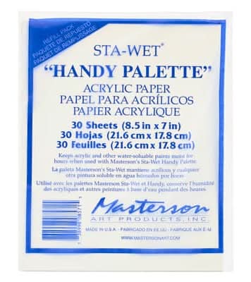 Specially designed for use with acrylics and water-based paints, this palette paper keeps paints moist for days—even weeks! For use with the Sta-Wet Handy Palette, each sheet works with a sponge to provide the ideal moist surface for mixing paints and mediums.