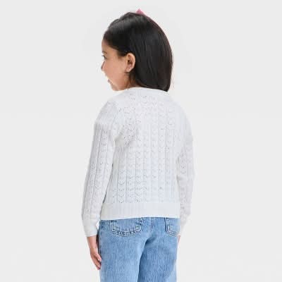 Cat & Jack Toddler Pointelle Cardigan, Women, 5T, Cream