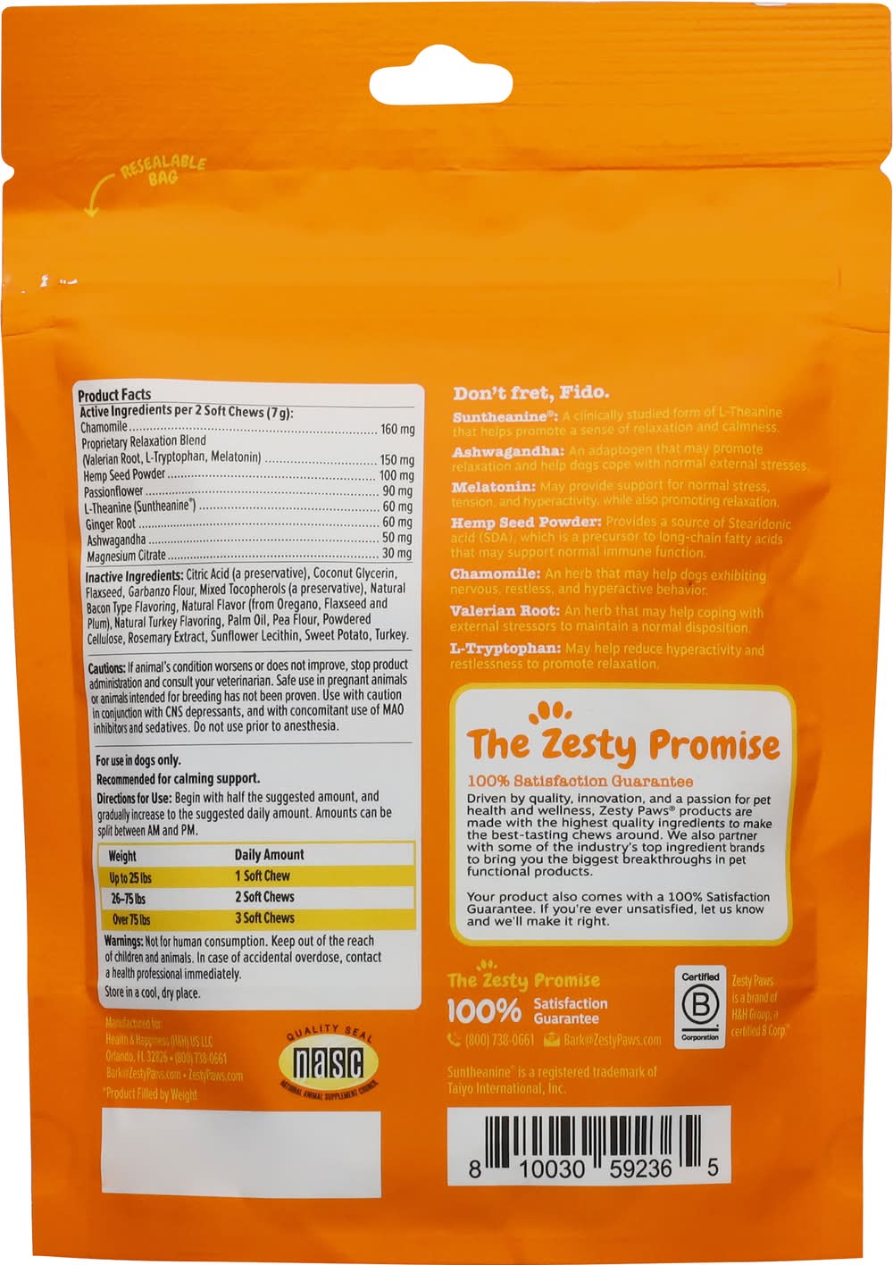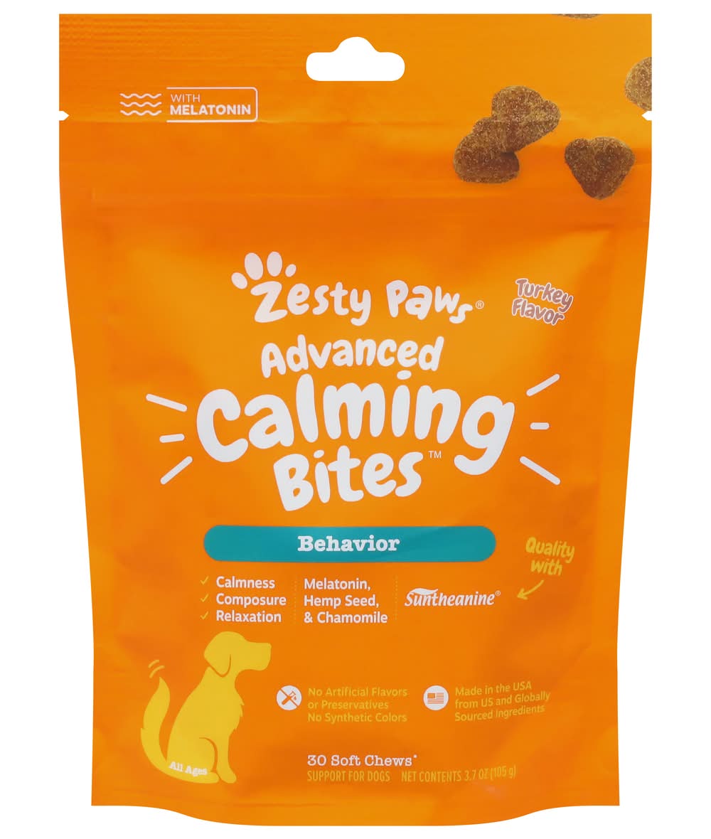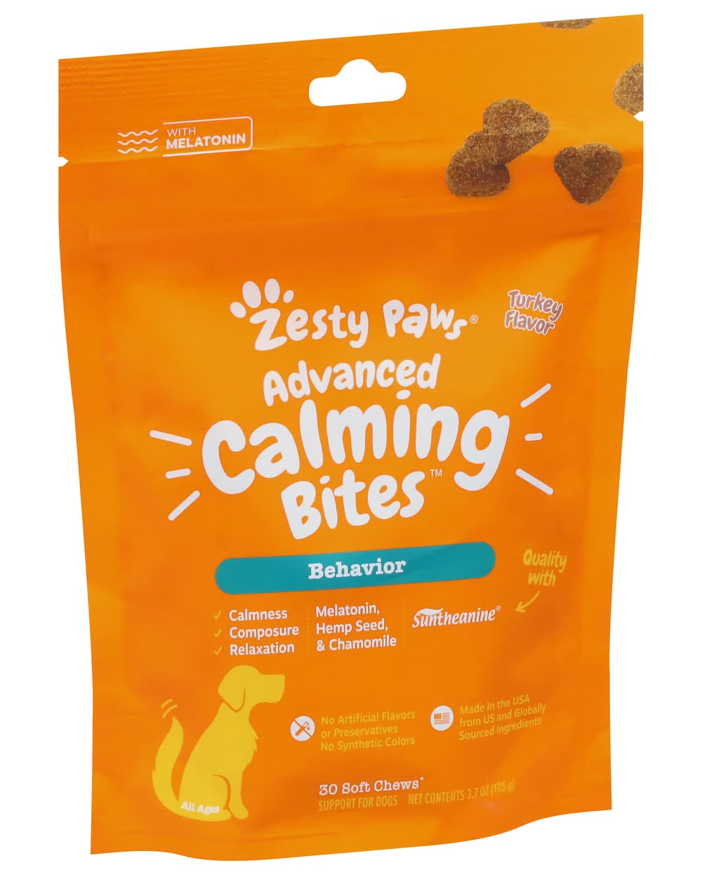 Zesty Paws Advanced Calming Soft Chew Bites For Dogs, Turkey (3.7 oz, 30 ct)