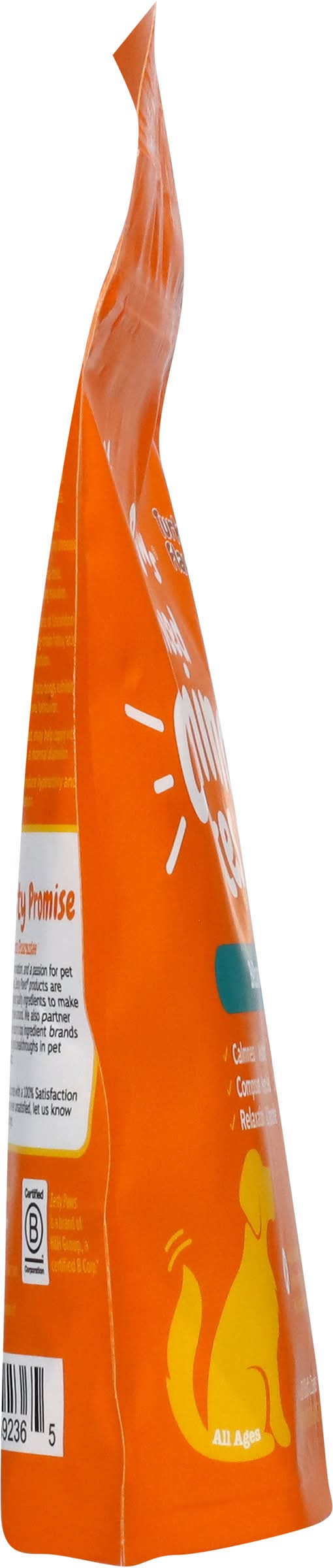 Sometimes, our furry friends need a little extra TLC to keep feeling zesty. That's where Zesty Paws comes in with Advanced Calming Bites. This functional dog supplement features Suntheanine, an advanced form of L-Theanine along with Ashwagandha. Together, these ingredients along with Melatonin help support relaxation for your canine pet. Plus, these soft chews also include Chamomile, Valerian Root, and L-Tryptophan for additional support to help your pup stay calm! Advanced Calming Support - These calming chewables provide dogs with support for normal stress, nervousness, and hyperactivity to help them stay calm, comfy, happy, and most of all... zesty! Featuring Suntheanine - Every chew contains Suntheanine, a clinically studied and super premium form of L-Theanine that helps promote a sense of relaxation and calmness for your pup Includes Melatonin & Ashwagandha - These ingredients promote relaxation and help any small, medium, or large dogs cope with normal external stresses