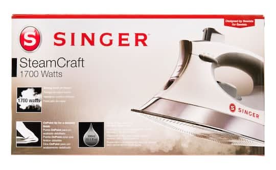 Purchase the SINGER Steam Craft Steam Iron at Michaels. The SINGER Steam Craft Steam Iron is designed for the sewer, quilter, and crafter with consumer-inspired specifications at a great value. 12.25" x 7" x 6.25" (31.1cm x 17.7cm x 15.8cm) product dimensions . 10 foot, 360 degree cord: Increase your range of movement while ironing with this useful feature . Professional, wrinkle-free results: With an ergonomic design and focus on fabric care, the SINGER Steamcraft Plus iron produces a first-rate pressing and fabric steaming experience . OnPoint Tip Technology (patent pending): Easily iron around buttons, seams, and pleats for a crisp finish. Experience how Singer's OnPoint tip technology helps to iron hard to reach areas on garments! . Strong burst of steam: Enjoy expert results with 1700 watts of steam. Watch wrinkles fade away as you relax your fabrics with steam and then easily press creases . Heat selector dial: The dial includes five fabric options so you never have to worry about burning your fabric. Options include Linen, Cotton, Wool, Silk, and Nylon . SINGER SteamCraft Steam Iron