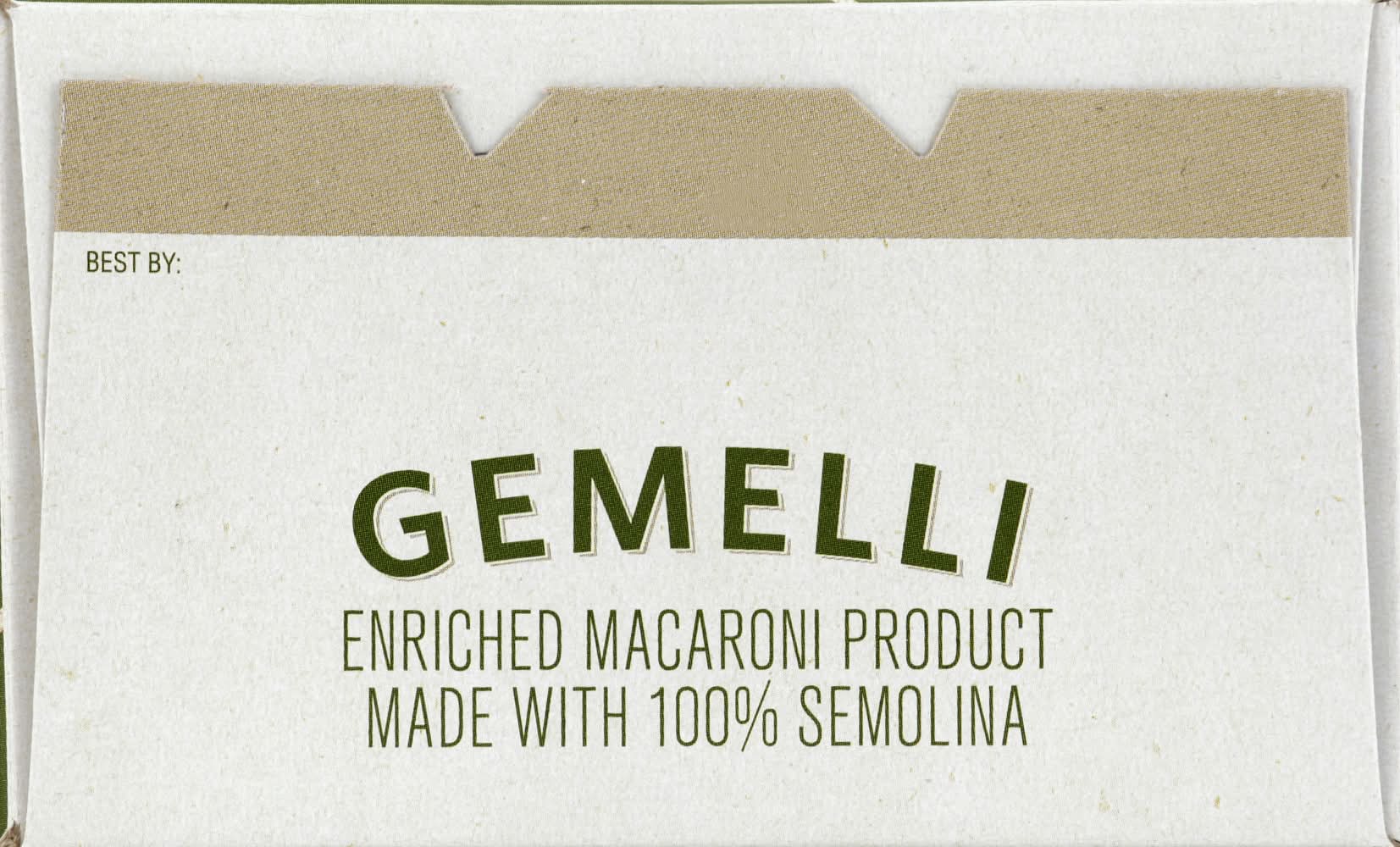 Bring 4 quarts of water to a rapid boil. If desired, add 2 tsp of salt. Gradually add 16 oz of Gemelli to boiling water. Stir gently and return to a rapid boil. Cook uncovered, stirring occasionally for 10-12 minutes, or until desired degree of tenderness is reached. Drain. For casseroles and pour-over sauces, rinse in hot water. For salads, rinse in cold water. Store in a cool dry place.