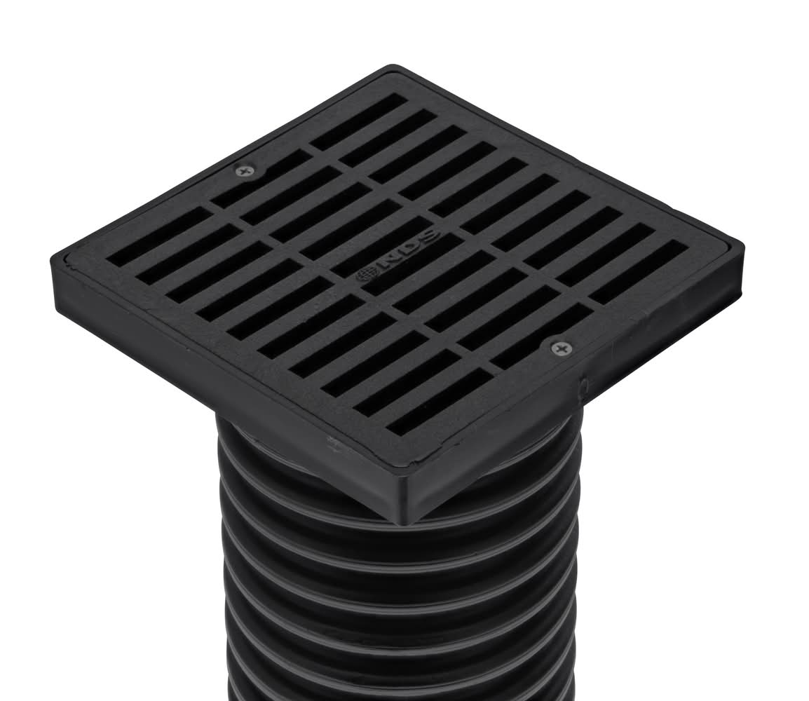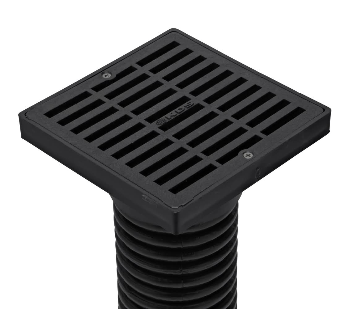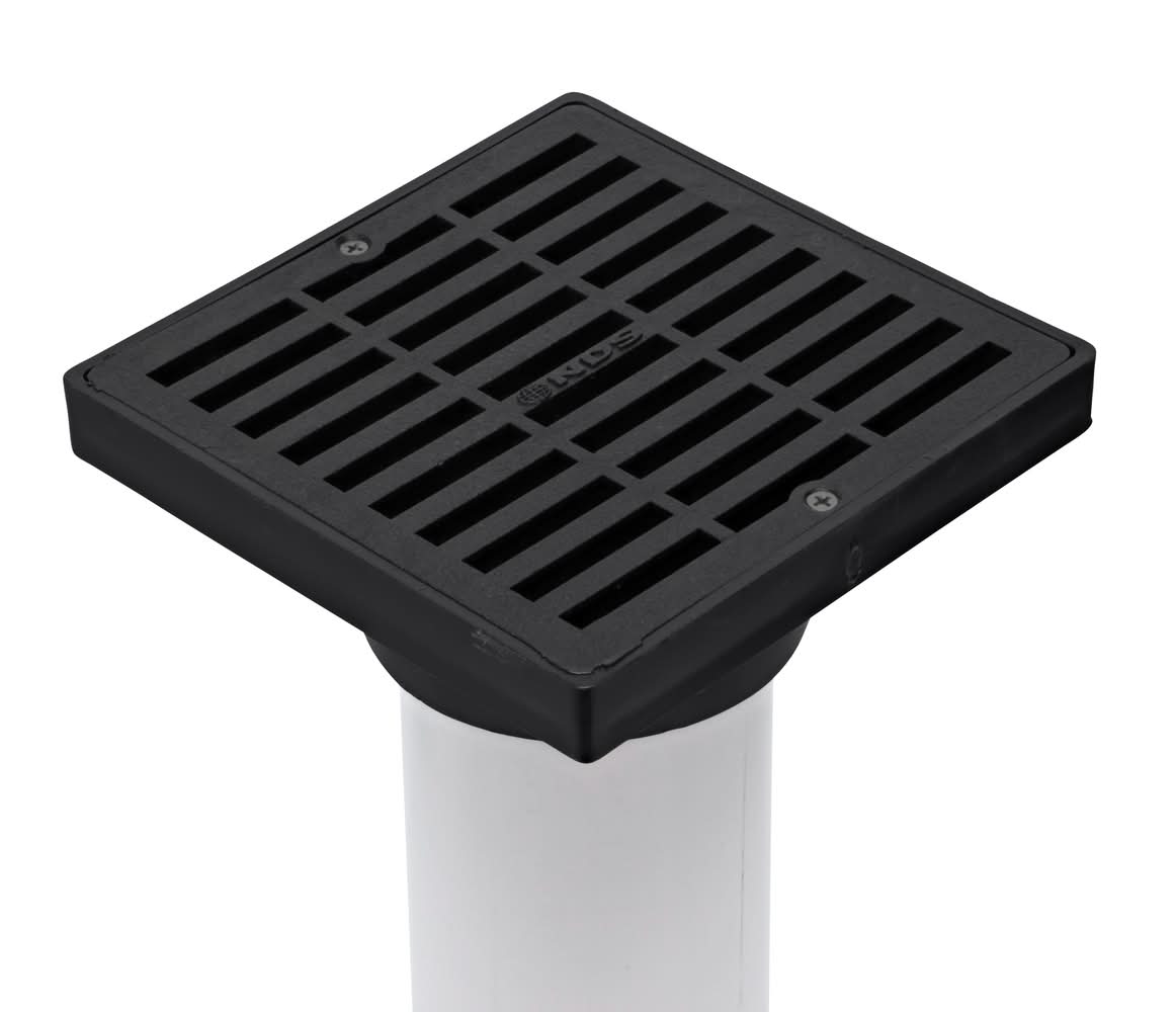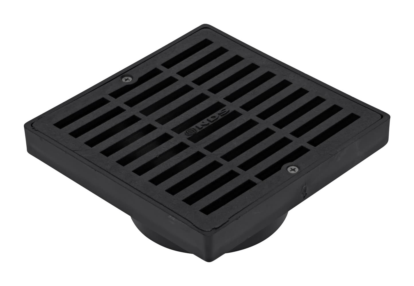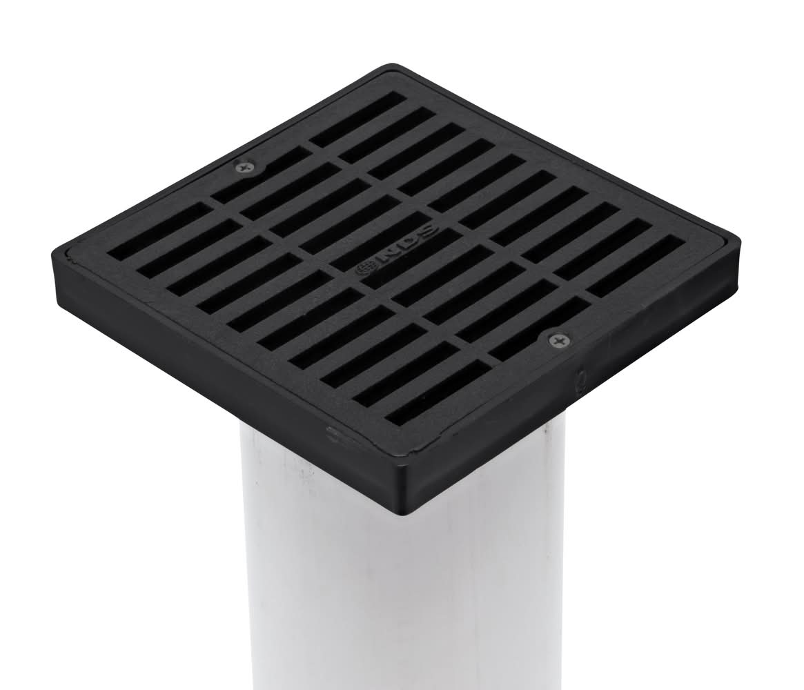 NDS Plastic Square Drainage Grate With Adapter, 6 in, Black