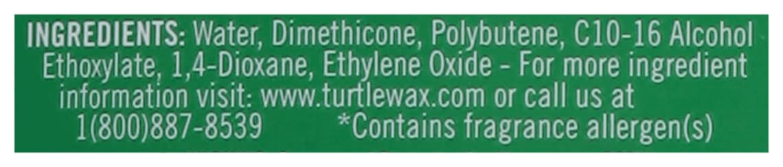 Ingredients: Water, Dimethicone, Polybutene, C10-16 Alcohol Ethoxylate, 1.4-Dioxane, Ethylene Oxide