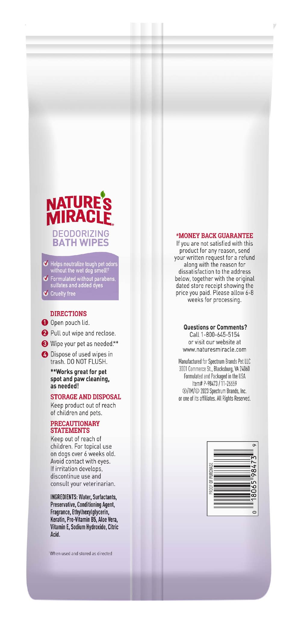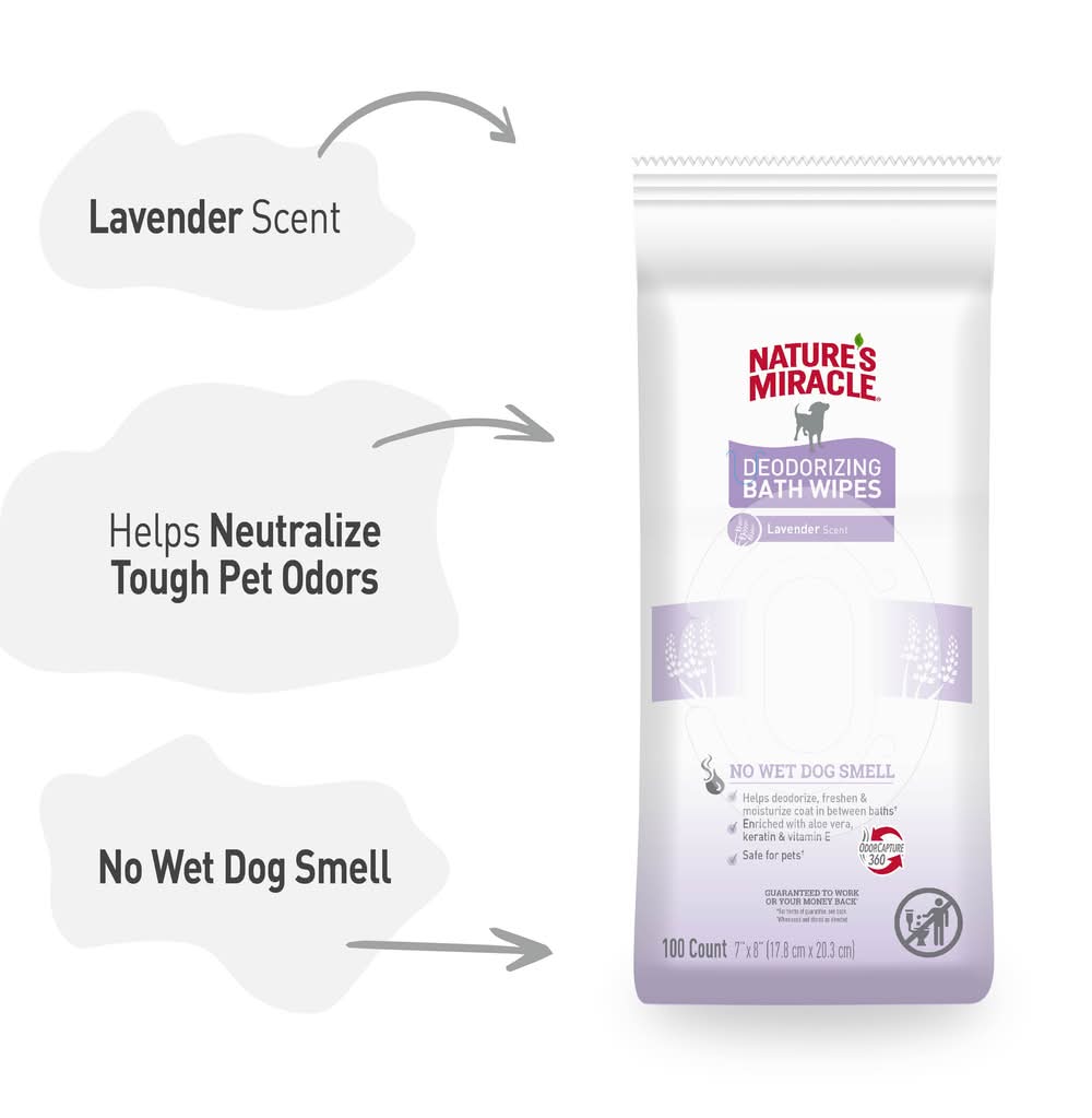 Nature's Miracle Deodorizing Bath Wipes, Lavender, 7" x 8" (1.8 lbs, 100 ct)