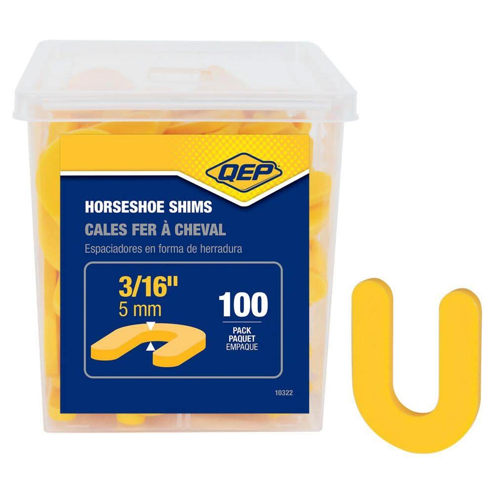 QEP 3/16 in. Horseshoe Shim Tile Spacers are ideal for spacing and aligning marble, granite, stone, and large format tile installations. They are engineered to produce a 3/16 in. (5 mm) grout joint, and to quickly and easily space, and align horizontal and vertical tile. They are injection molded for dimensional accuracy and do not compress under heavy loads, making them especially helpful in vertical installations. QEP Horseshoe Shims are easy to clean, reusable, and packaged in a convenient recyclable pail containing 100 spacers. • Color: Yellow • Size: 3/16 in