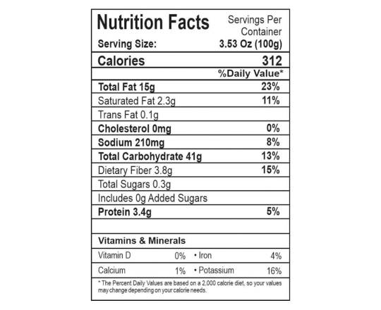 Potatoes 85.11%, Corn Starch 2.13%, Salt 1.70%, Pepper 1.70%, Chilli Flakes 1.70%, Oil 8.51% Contains: Gluten, Milk, Mustard, Soy, Wheat