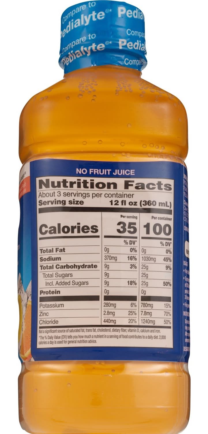 HSA/FSA EligibleCompare to Pedialyte. Keep up with everyday hydration and electrolyte needs in the face of illness, exercise, travel or heat exhaustion. Mixed Fruit Electrolyte Solution helps children & adults prevent dehydration by quickly restoring fluids and electrolytes more effectively than sports drinks, sodas, juices & water. Pedialyte is a registered trademark of Abbott Laboratories. This product is not manufactured or distributed by Abbott Nutrition, Abbott Laboratories, the distributor of Pedialyte. ELECTROLYTES: Feel your best. Mixed Fruit Electrolyte Solution is an electrolyte drink designed to help restore electrolytes and fluids. A full-flavored hydration option for adults and children. Compare to Pedialyte. HYDRATION: The fast, effective rehydration of Electrolyte Solution helps replenish electrolytes quickly. This electrolyte drink helps restore fluids, electrolytes and zinc more effectively than sports drinks, sodas, juices and water. TRUST & VALUE: Pediatricians & Pharmacists recommend using electrolyte solutions to quickly replenish fluids, zinc and electrolytes to help prevent dehydration. Compare to the national brand & save. MIXED FRUIT is just one of our delightful flavors of electrolyte drinks. Best when served chilled. Helps to prevent mild to moderate dehydration and to quickly restore fluids, zinc and electrolytes. COMMON CAUSES: Vomiting & diarrhea, intense exercise, heat exhaustion and travel can deplete fluid & electrolyte levels. Electrolyte Solution can help prevent and restore electrolyte balance & for fast, effective rehydration. Flavor: Mixed fruit