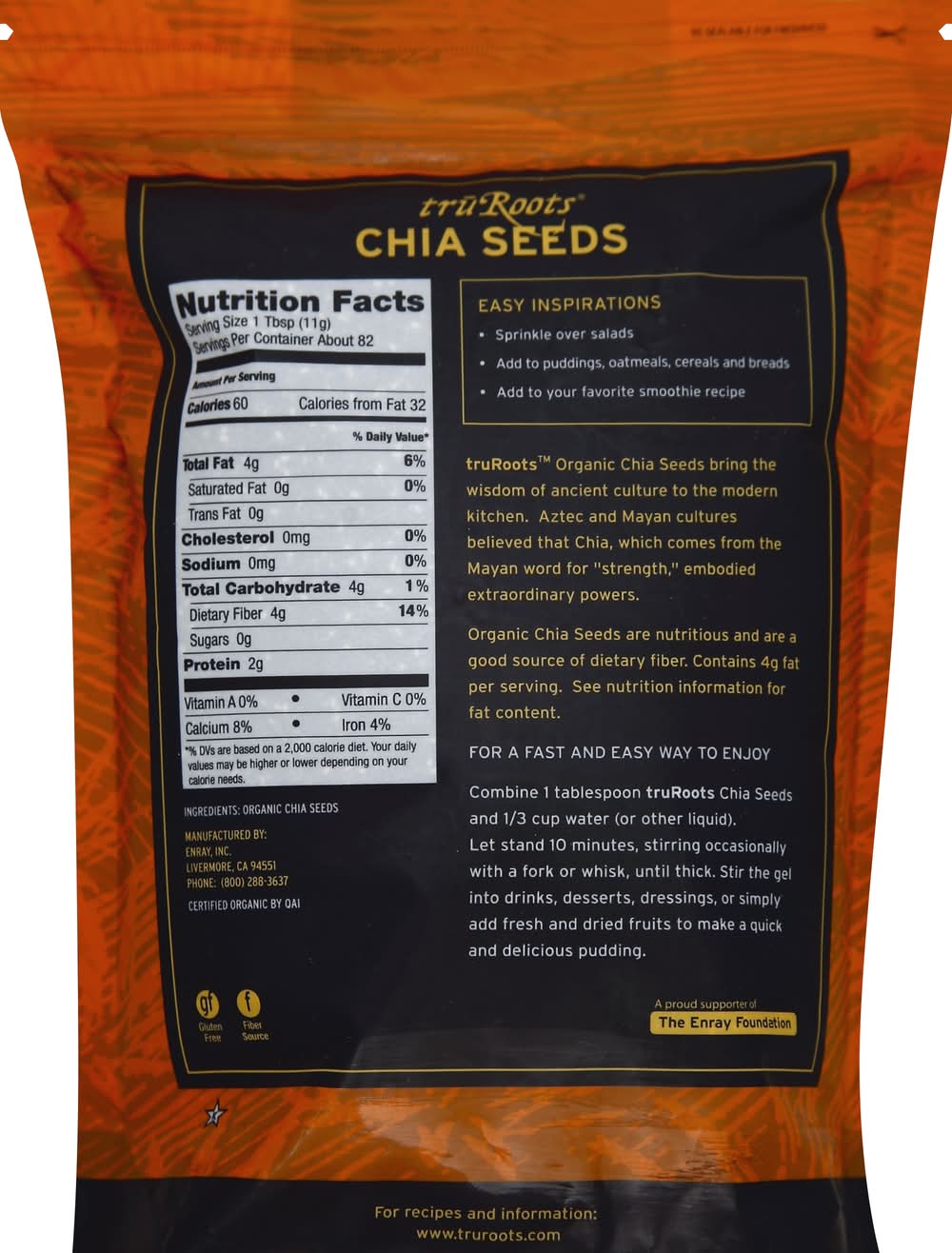 For a Fast and Easy Way to Enjoy: Combine 1 tablespoon TruRoots Chia Seeds and 1/3 cup water (or other liquid). Let stand 10 minutes, stirring occasionally with a fork or whisk, until thick. Stir the gel into drinks, desserts, dressings, or simply add fresh and dried fruits to make a quick and delicious pudding. Easy Inspirations: sprinkle over salads; add to puddings, oatmeals, cereals and breads; add to your favorite smoothie recipe.