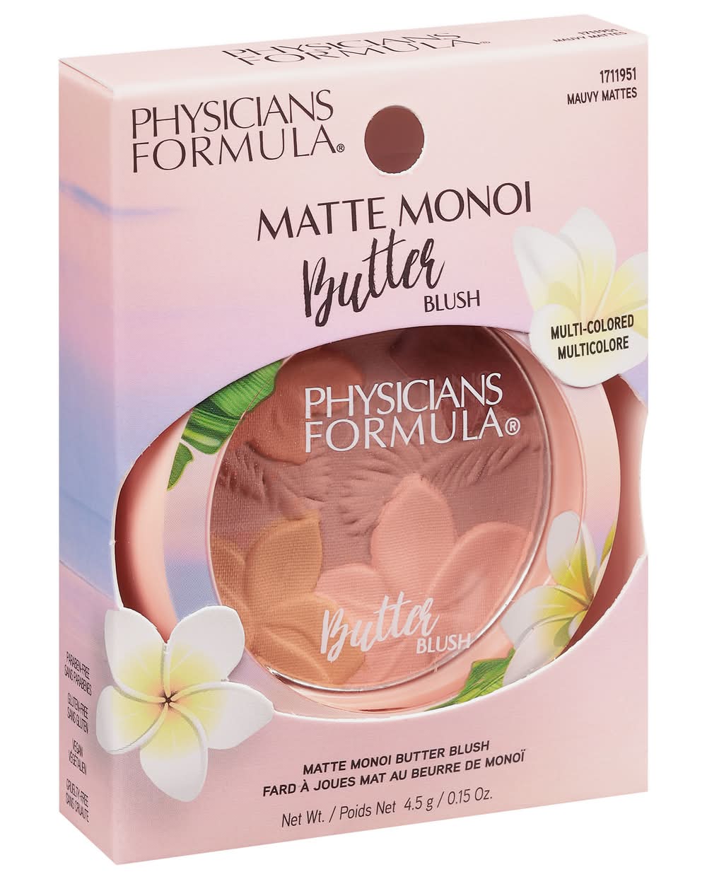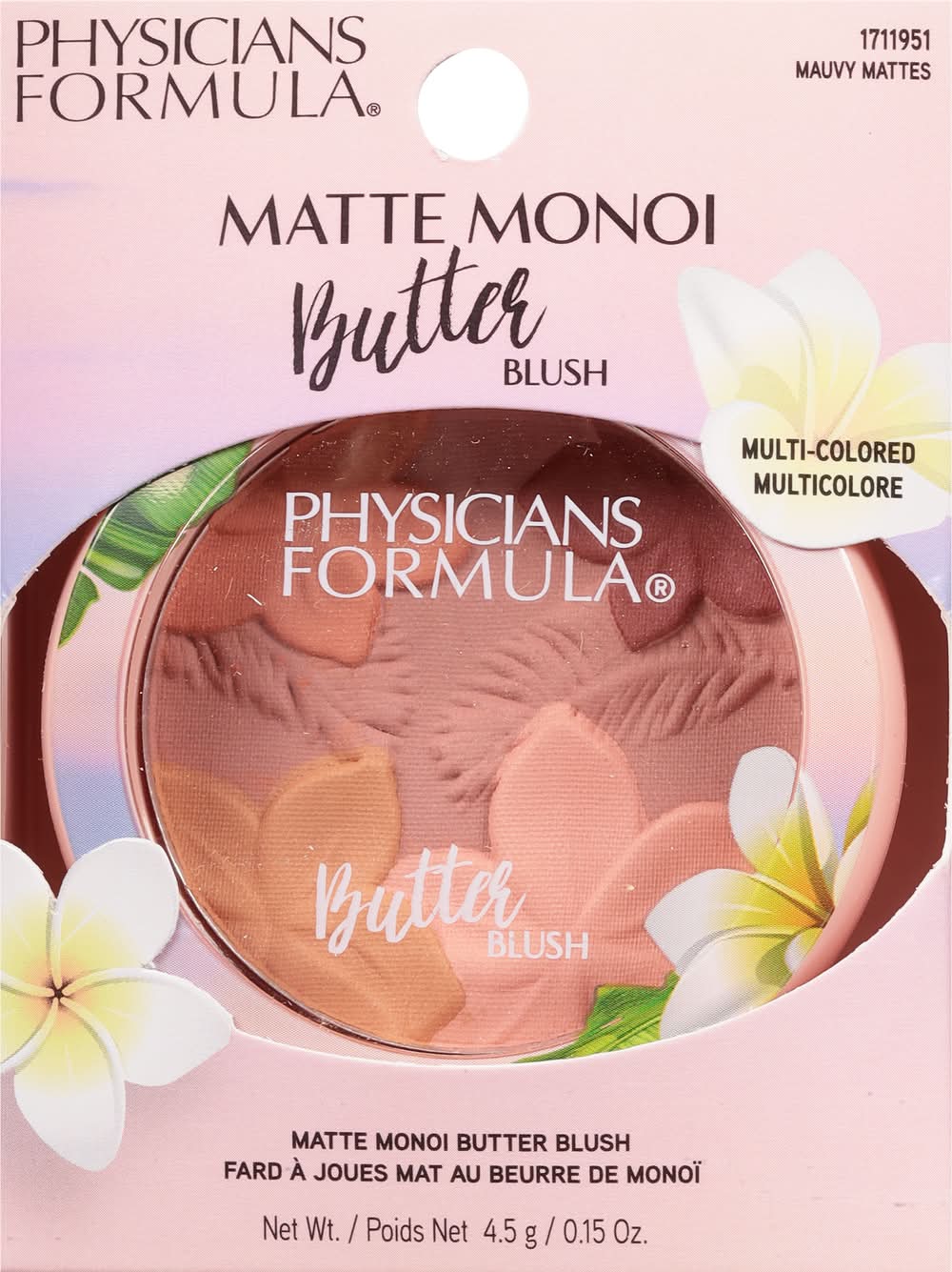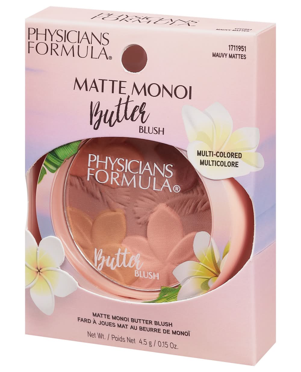 Gluten-free. Vegan. What It Is: An ultra-luxurious, multi-colored matte blush infused with our proprietary Butter Blend with Monoi Butter to deliver a long-lasting, natural-blushed Tahitian look! Incredibly creamy and soft texture combines the best features of a powder and cream blush to deliver an airbrushed matte finish unlike any other. Why It's Good For You: Infused with a powerful blend of exotic Tahitian Monoi Butter, Murumuru Butter, Cupuaçu Butter, and Tucuma Butter from the lush and nutrient-rich Amazon. Packed with essential fatty acids and pro-vitamins that soften, condition, and moisturize skin, leaving it silky soft. Mirror and brush included. Paraben-free. www.PhysiciansFormula.com. Cruelty-free. Made in China.