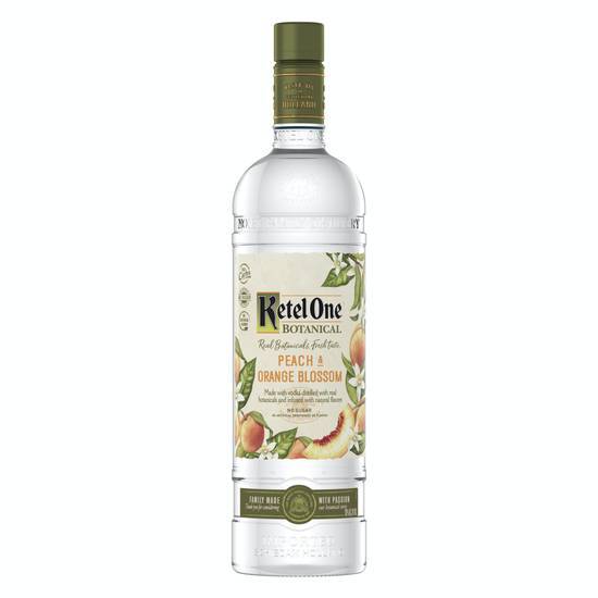 Ketel One Botanical Peach & Orange Blossom is a vodka specialty distilled with real botanicals and infused with natural flavors, offering a fresh and crisp taste profile. With a base of lush, juicy white peaches complemented by the bold scent of fragrant orange blossoms, it provides a unique flavor experience. The product achieves its distinctive taste through innovative extraction methods and distillation processes that ensure the essences remain pure and vibrant. Notably, it contains no carbs, artificial flavors, sweeteners, or sugar. The recommended serving suggestion is to enjoy it in a wine glass over ice, topped with soda water and a garnish of choice for a refreshing cocktail. The bottle contains 750ml of vodka at 60 proof. Enjoy responsibly. Alcohol by volume: 30%
