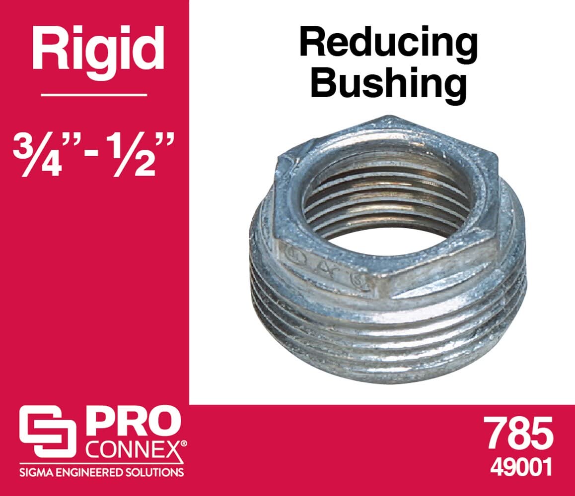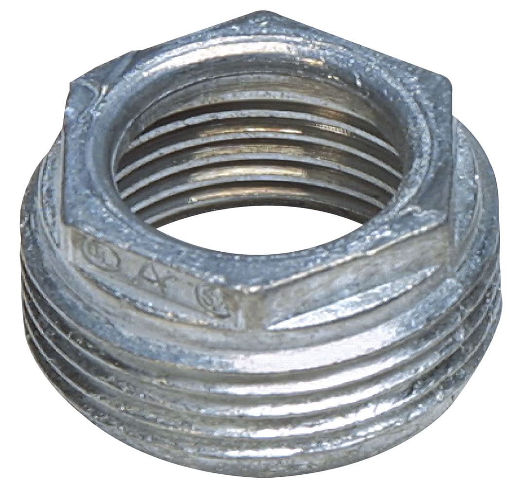 Reduces the entry size of threaded Rigid conduit and IMC. Provides transition from 3/4-in to 1/2-in threaded conduit. Zinc die-cast construction. Product is UL and CSA listed. For CA Residents Only: WARNING: This product can expose you to chemicals including Lead which are known to the State of California to cause cancer and birth defects or other reproductive harm. For more information go to www.P65Warnings.ca.gov.