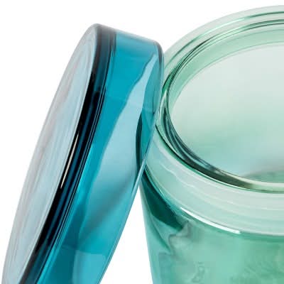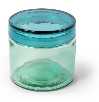 Bring convenience to your space with the Glass Canister Teal. Crafted from glass, this decorative jar features a striking teal hue that adds a pop of color to any room, it is perfect for storing small items or simply enhancing your decor.