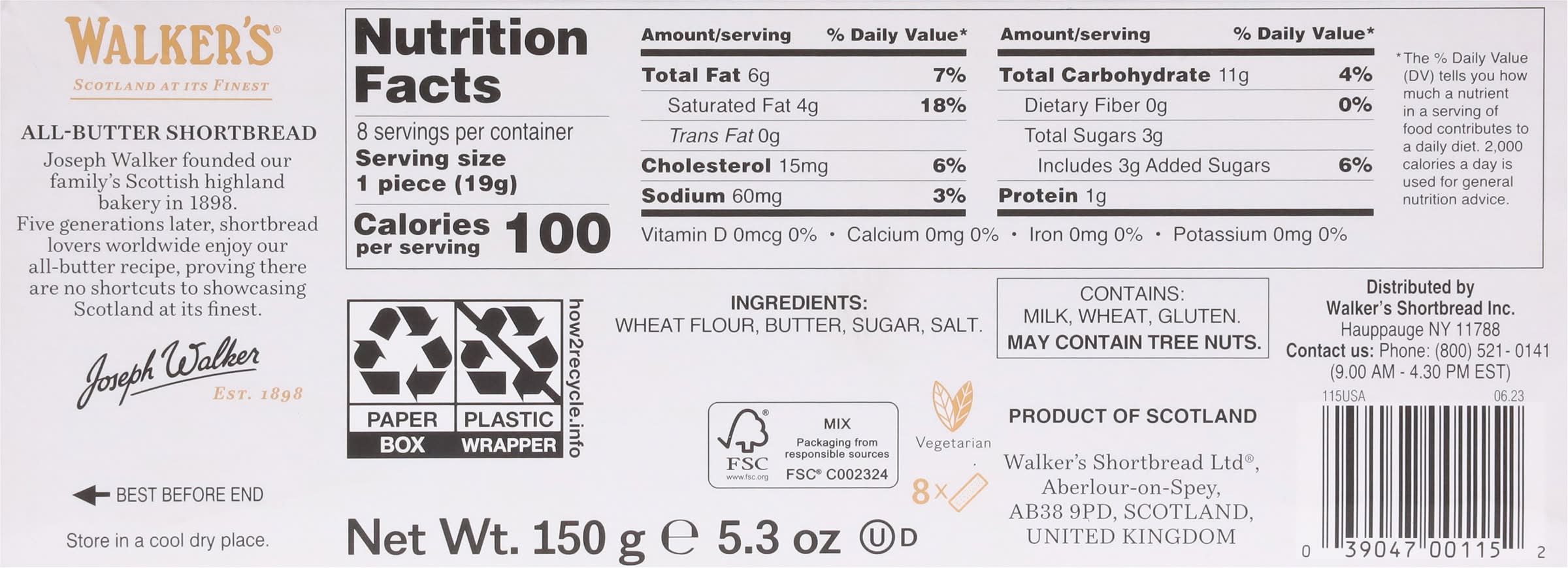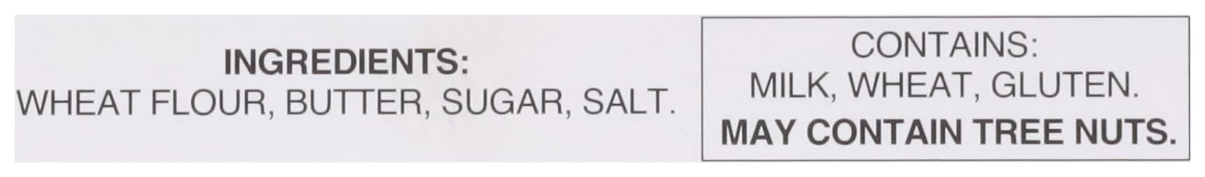 Ingredients: Wheat Flour, Butter, Sugar, Salt Contains: Milk, Wheat, Gluten, Tree Nuts
