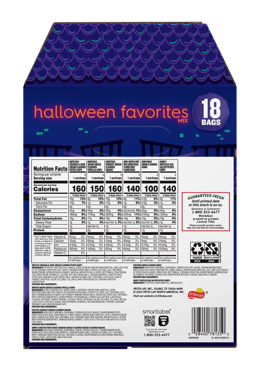 Frito-Lay Variety Snack pack, Halloween Favorites Mix (0.92 oz, 18 ct)
